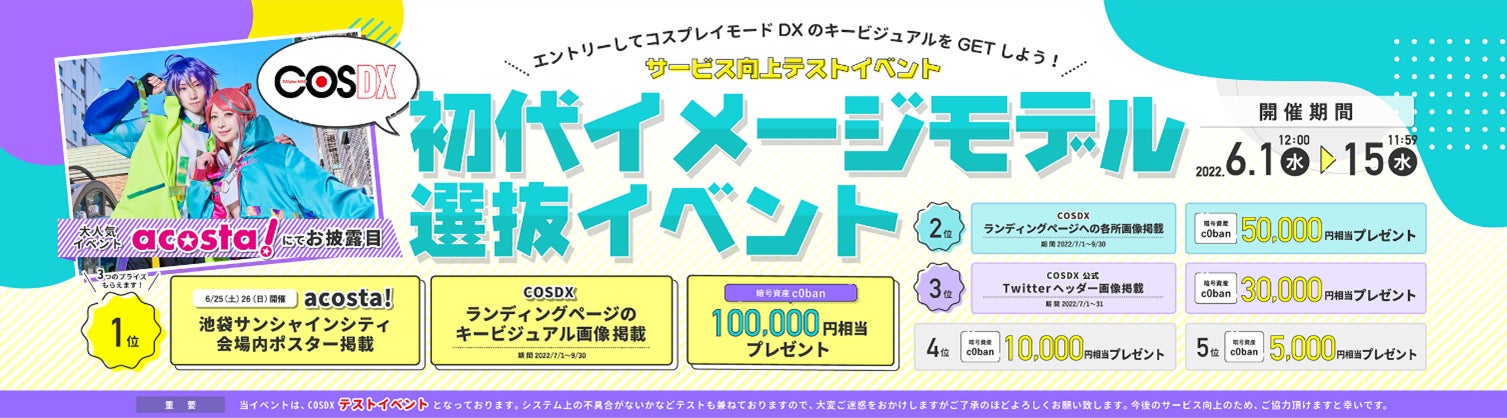 コスプレ特化ライブ配信×NFT販売プラットフォーム【COSPLAY MODE DX】配信者ランキング機能実装並びにテストイベント開催のお知らせ