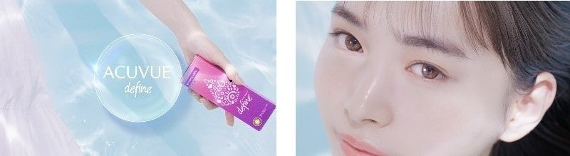 「アキュビュー® ディファイン® 」は、アキュビュー® 独自の技術により、レンズ内に閉じ込めた保湿成分で、朝から夜までうるおい、快適なつけ心地が持続するコンタクトレンズです。さらに、瞳の模様(虹彩)をもとにしたビューティーセンサイラインにより「瞳本来の美しさを活かしながら、自然で美しくあなたらしい瞳を実現したい」という想いを込めて作られたレンズデザインも特徴です。