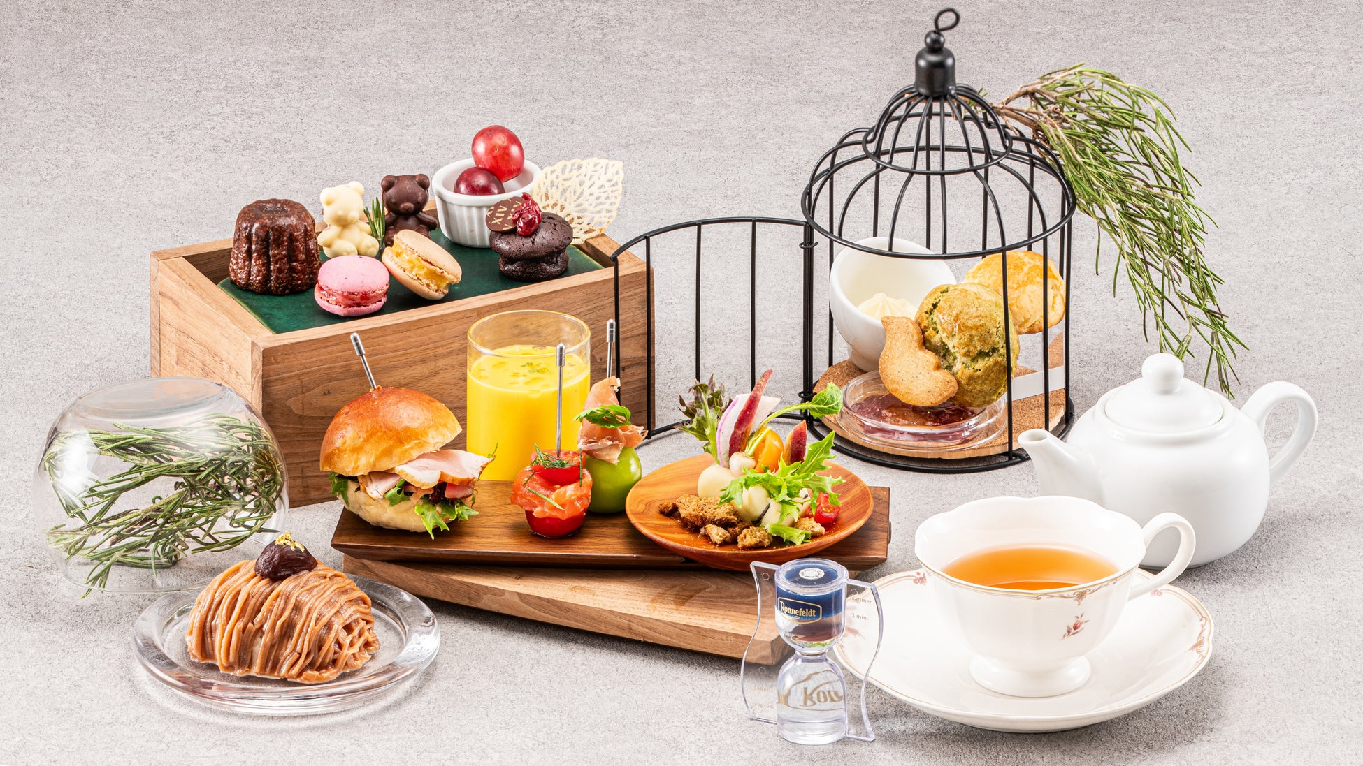 モルトンブラウンの2024年の新コレクション「リヴァイヴィング ローズマリー」の香りからインスパイアを受けてメニューを構成した、スイーツやセイボリーを優雅なアフタヌーンティーでお楽しみください。