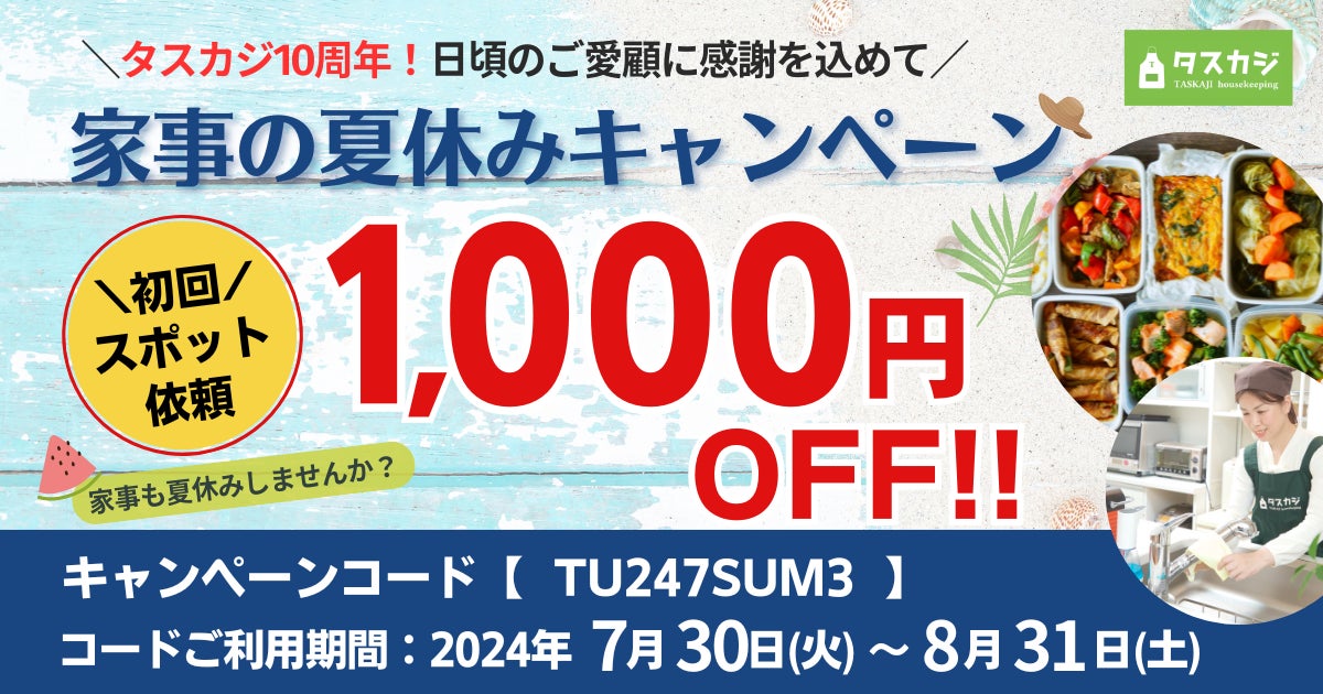 10年のご愛顧に感謝して、初回スポット依頼割引キャンペーン『家事の夏休みキャンペーン』を実施します。