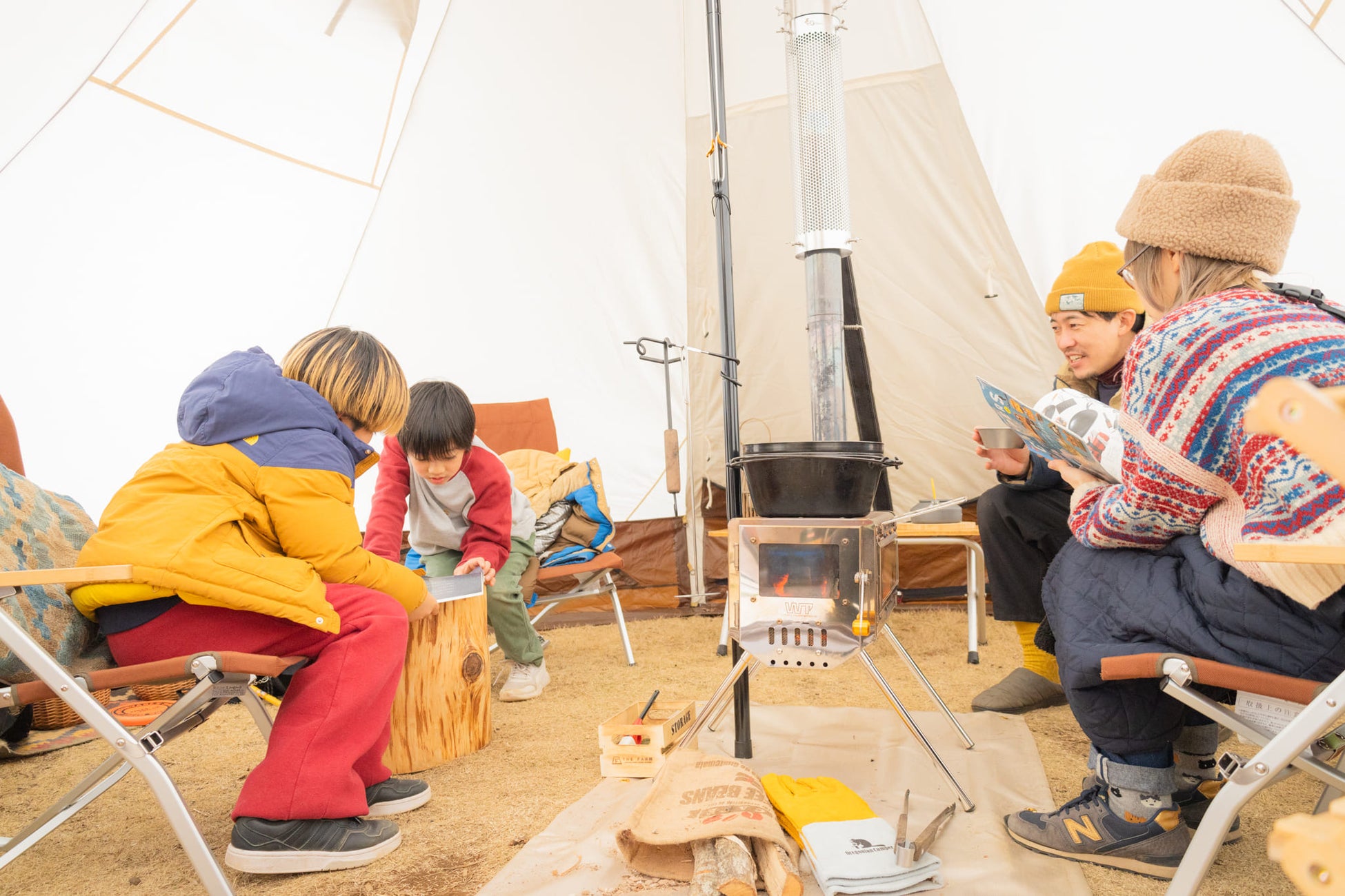 ・「ティピーが設営されているのがいい。日帰りなのにキャンプ気分満点」