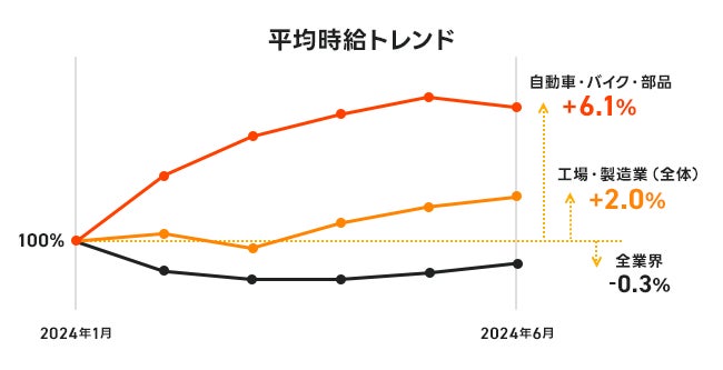 【工場・製造業の時給調査】直近半年の平均時給が工場・製造業は+2.0%、うち自動車業界は+6.1%