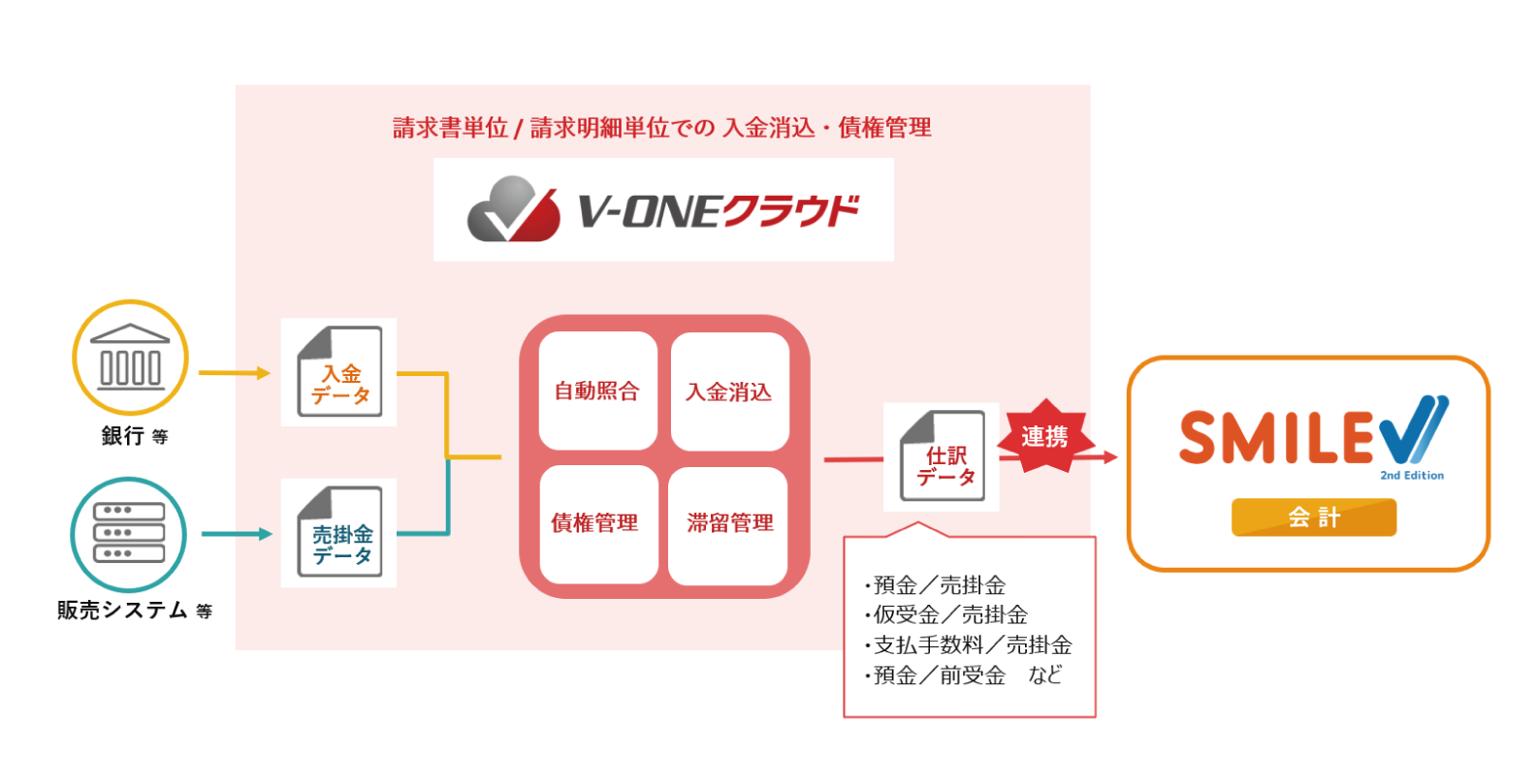 入金消込・債権管理システム「V-ONEクラウド」が「SMILE V 2nd Edition 会計」と仕訳連携を開始