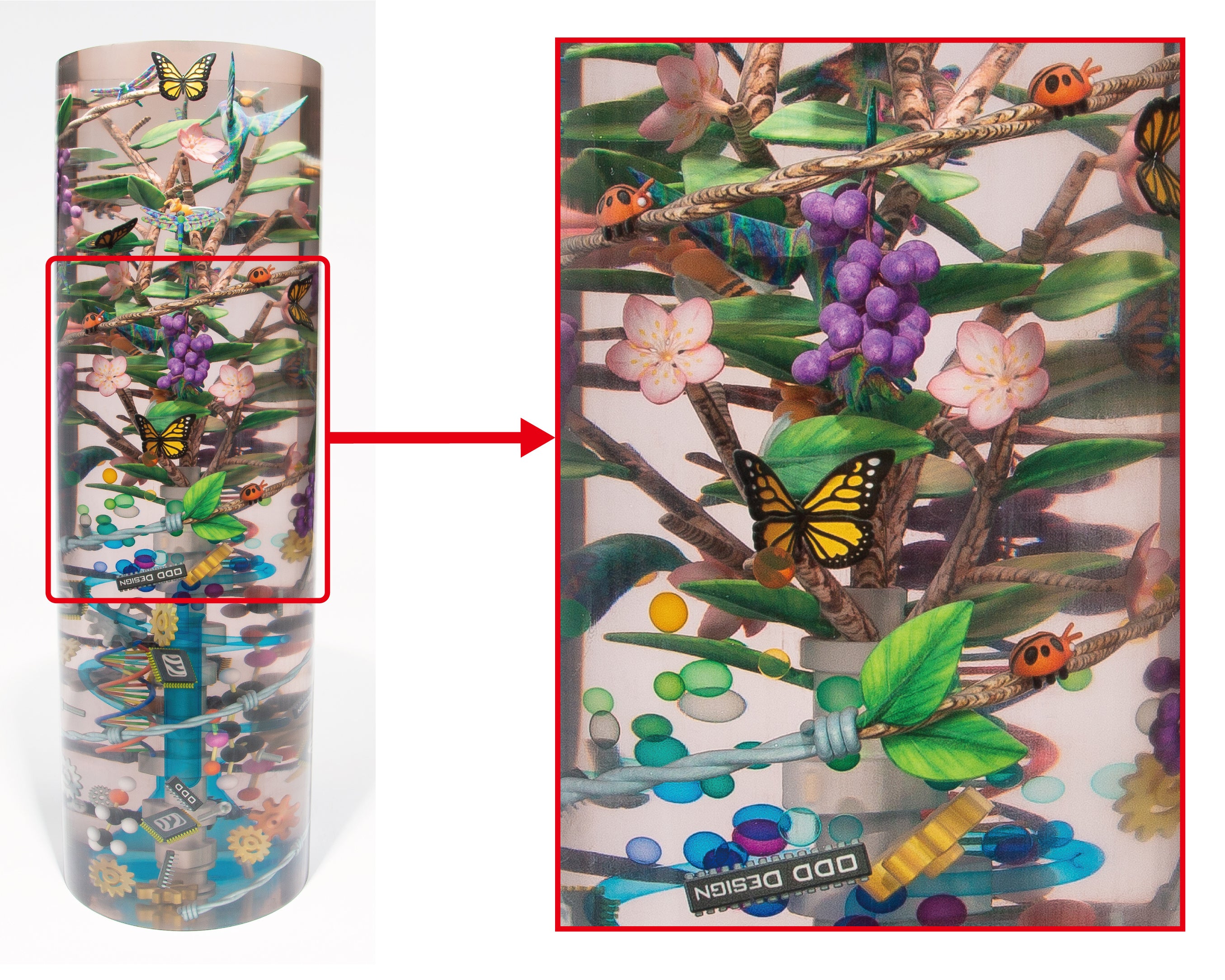 さらに、ピュアクリアインク「MH-110PCL」は、従来のクリアインク「MH-100CL」と同様に、クリアのみの表現だけでなく、カラーインク(シアン、マゼンタ、イエロー、ブラック)を組み合わせて、スケルトンカラー(色つきの透明)表現も可能です。そのため、「3DUJ-553」の特長である「1,000万色以上のフルカラー造形」に透き通ったピュアクリアインク「MH-110PCL」のクリア表現とスケルトンカラー表現が加わることで、これまで以上に多彩な色合いやビジュアルを重視したデザインでご活用いただけます。