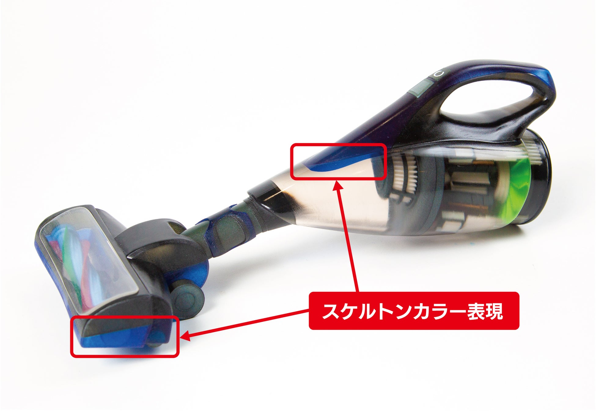 プロダクトデザインなどで必要とされる透明な部品の表現に最適です。クリアインクそのものによる透明表現はもちろんのこと、クリアインクにカラーインクを組み合わせたスケルトンカラー(色つきの透明)表現により、デザインの幅を広げます。