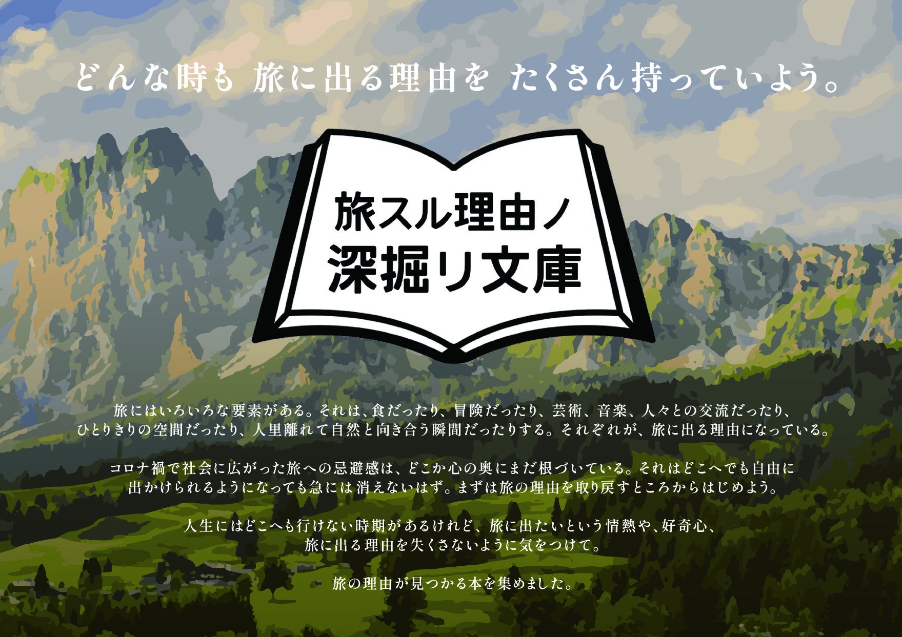 本キャンペーンと連動して一部店舗にて「旅スル理由ノ深堀リ文庫」と題したブックフェアを開催いたします。色々な旅する理由が見つかる、旅への思いが深まる一冊を集めて展開いたします。