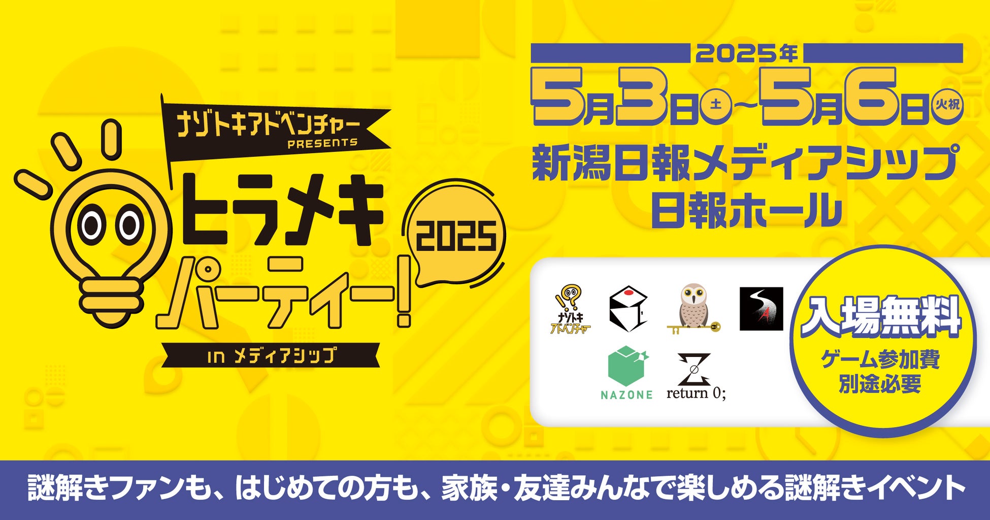 新潟の謎解きをさらにアツくする!ゴールデンウィークに謎解きフェスティバル「ヒラメキパーティー!inメディアシップ2025」を開催!