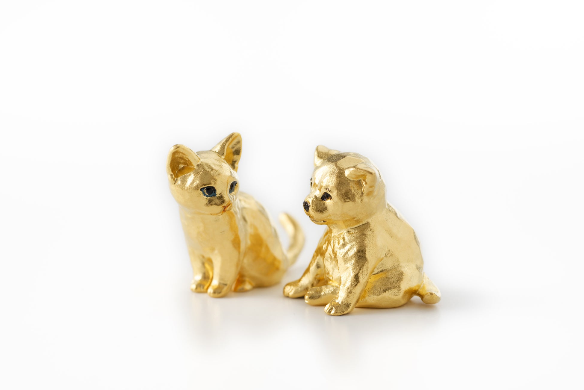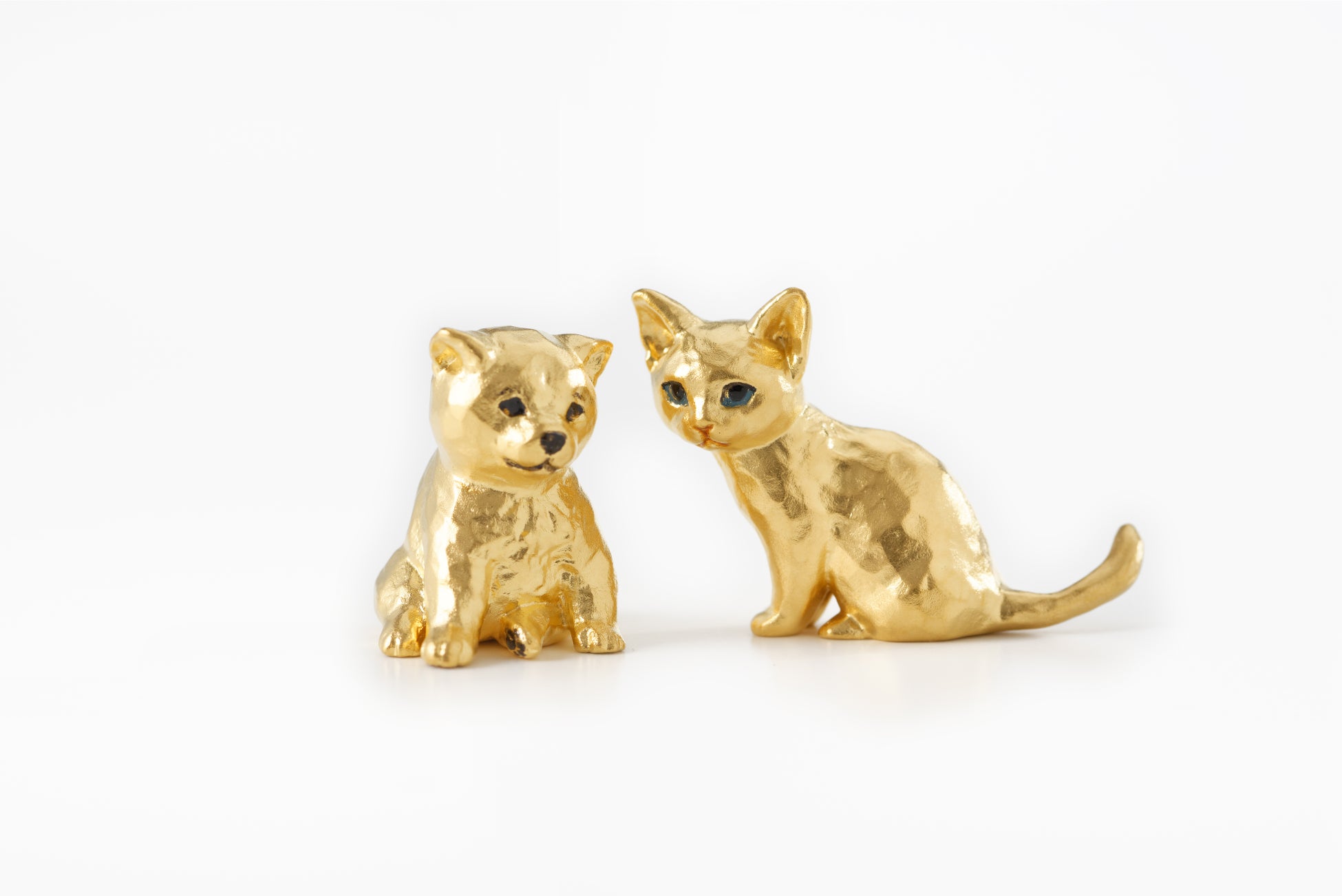 木彫り彫刻家のはしもと みお氏との共同製作「純金オブジェコレクション」人気の動物シリーズにかわいらしい表情のアイテムを拡充純金製オブジェ「子ねこ」「子いぬ」を6月15日(水)より販売開始