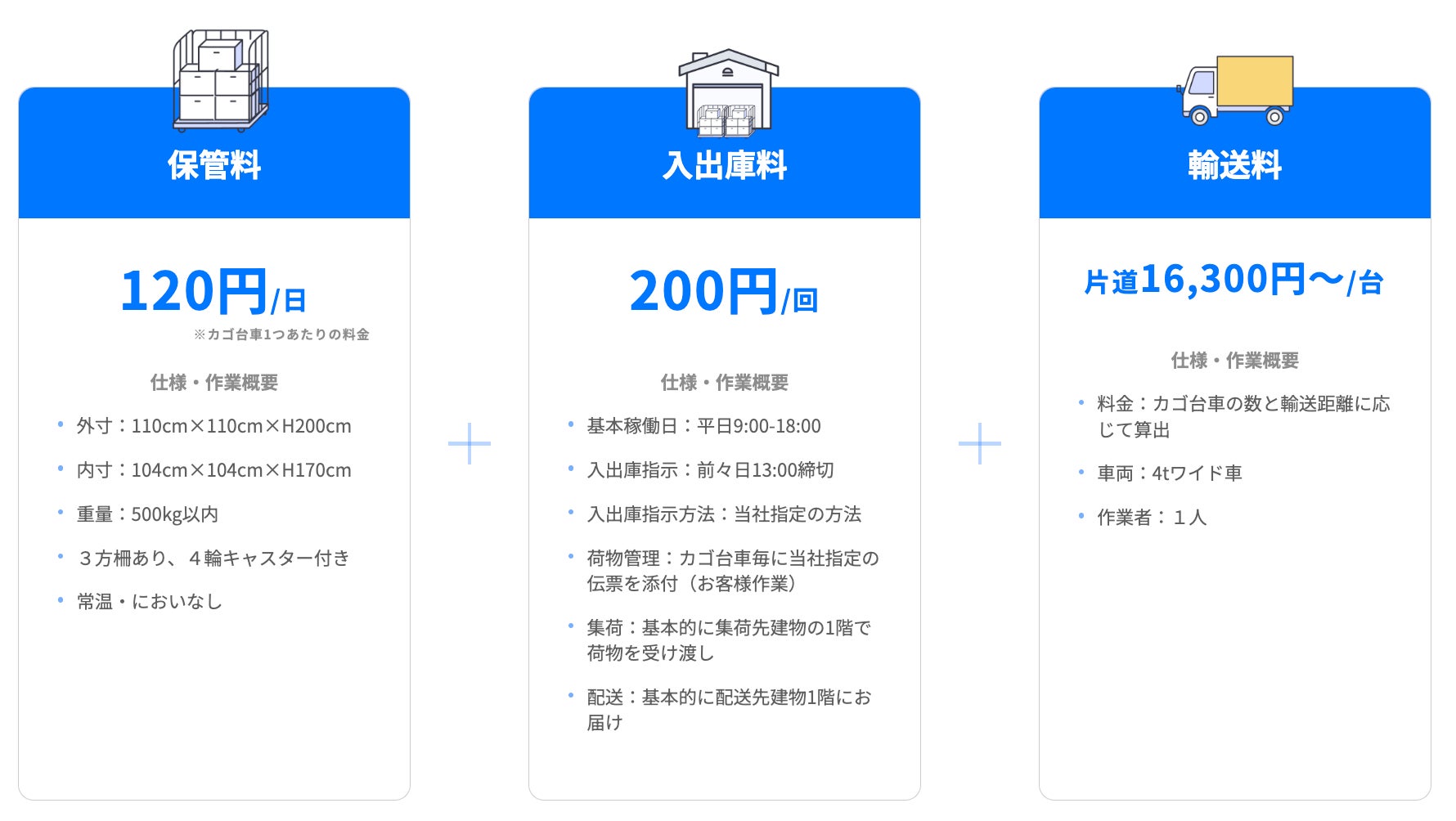 また、荷物の入庫・出庫時の輸送オプションとして貸切チャーター便の提供を行なっていましたが、今回のプランではカゴ台車に特化した輸送手段の提供により、貸切チャーター便よりも安価にご利用いただくことが可能となりました。