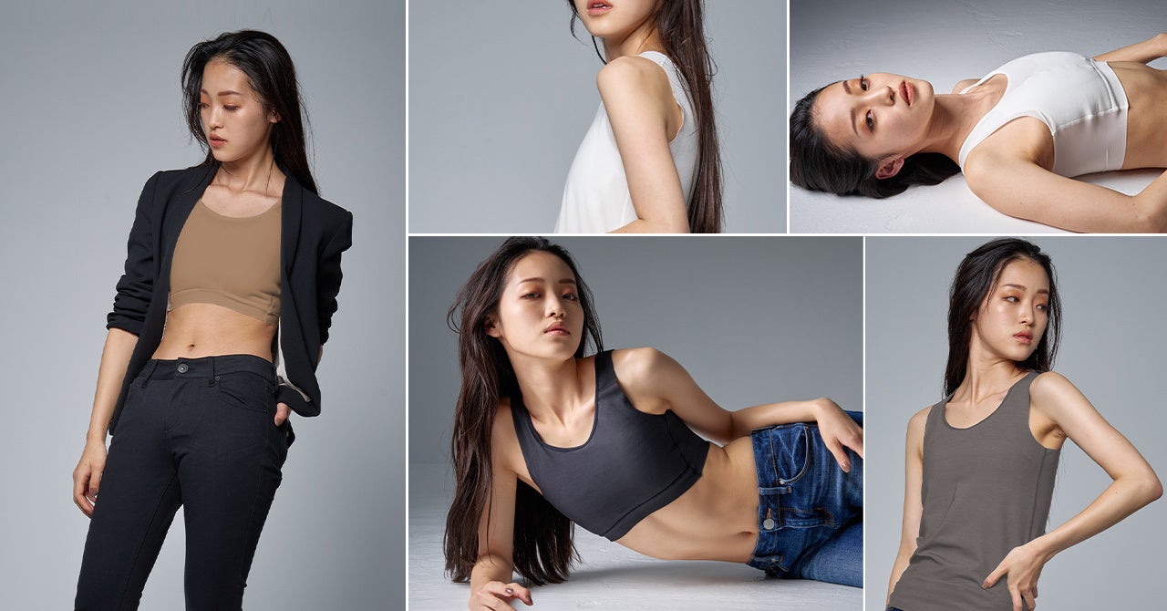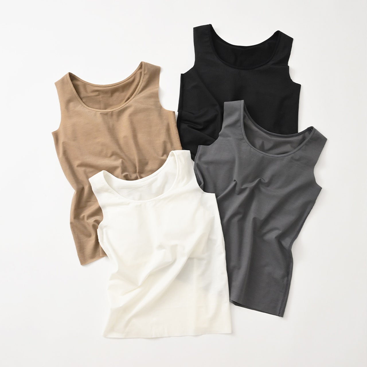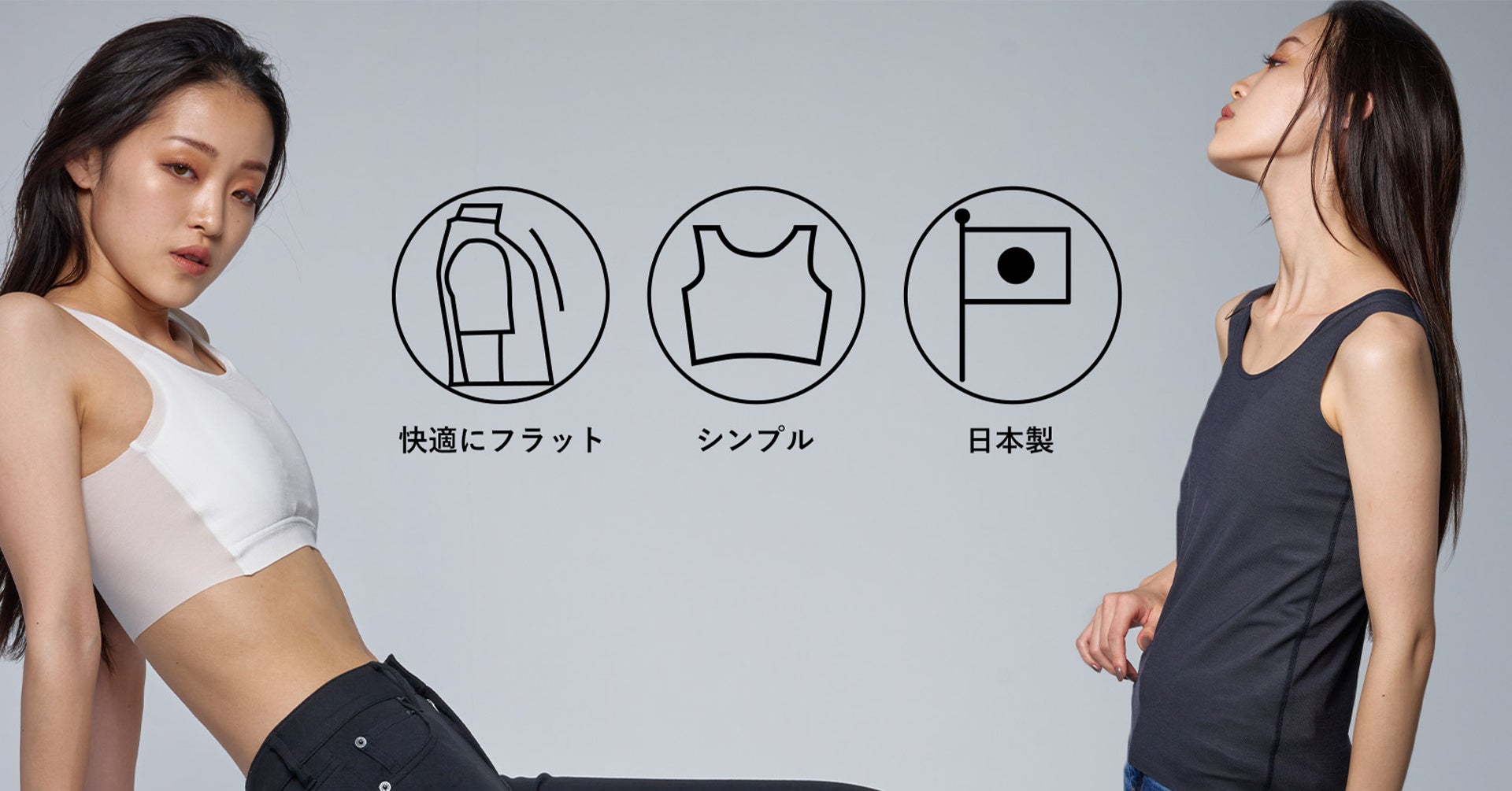 また、タンクトップは縫い糸なしの切りっぱなし仕様にすることで、洋服へのラインがひびきにくくなっています。