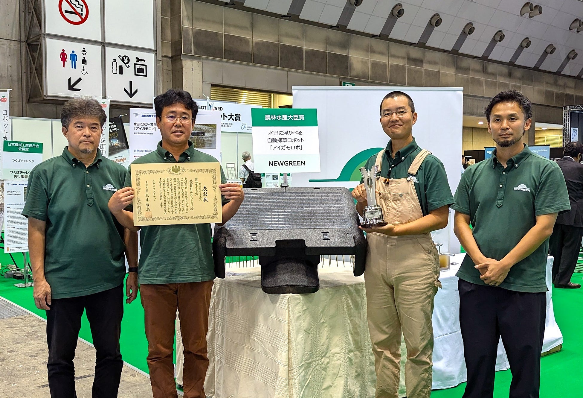 株式会社NEWGREENが開発製造する「アイガモロボ」がロボット大賞において「農林水産大臣賞」を受賞。9月18日に行われた表彰式では、農林水産副大臣 鈴木憲和 様 より表彰状の授与を受けました。