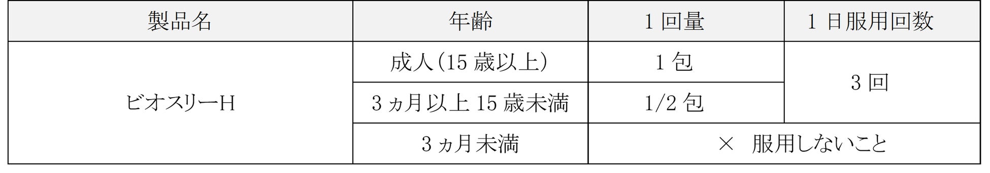 ビオスリーH 3包(15歳以上の1日服用量)中