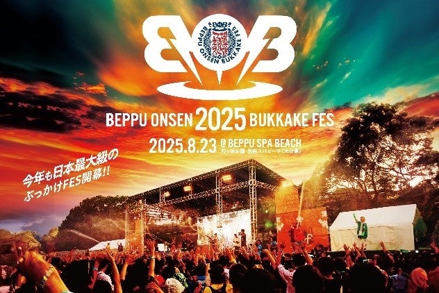 別府温泉を浴びながら楽しむ音楽フェス「BOB2025(別府温泉ぶっかけフェス2025)」 を2025年8月23日(土)に別府スパビーチにて開催いたします。BOB(別府温泉ぶっかけフェス)は地元・別府温泉から湧き出る温泉水を約1,000トン準備し盛大に放水する、今までにない音楽フェスです。アーティストやDJによる音楽はもちろん、温泉やサウナ、飲食ブースも出店予定です。