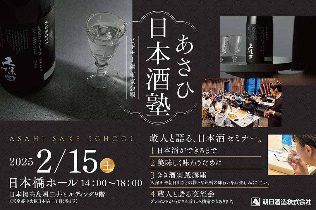 日本酒の製造工程ときき酒の仕方を学ぶ日本酒セミナー朝日酒造主催「あさひ日本酒塾 ビギナー編 東京会場」日本橋ホールで2025年2月15日(土)開催