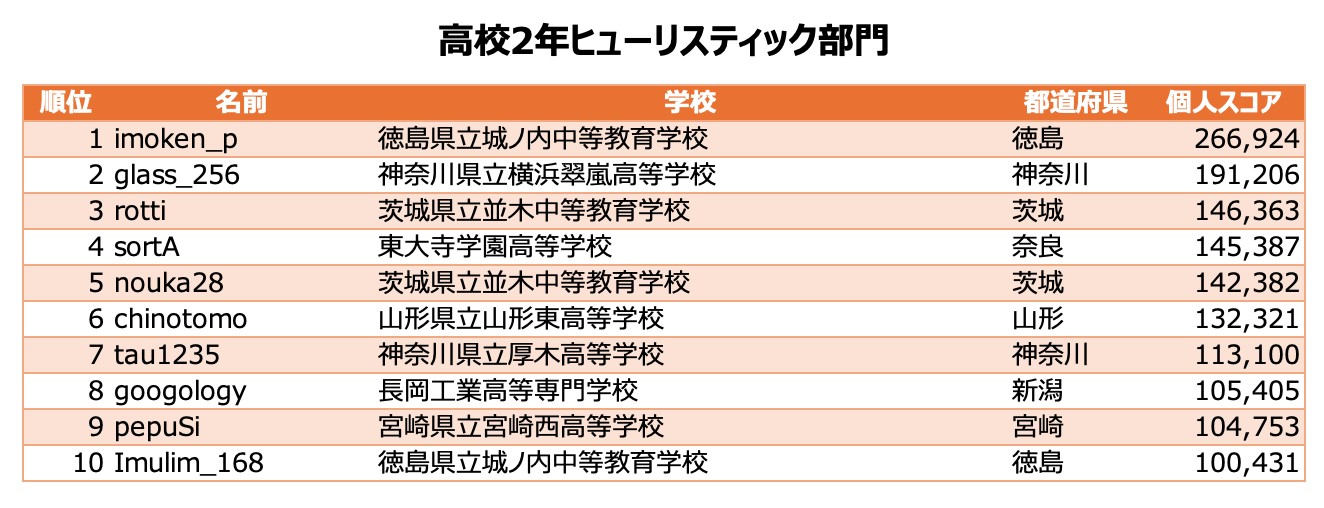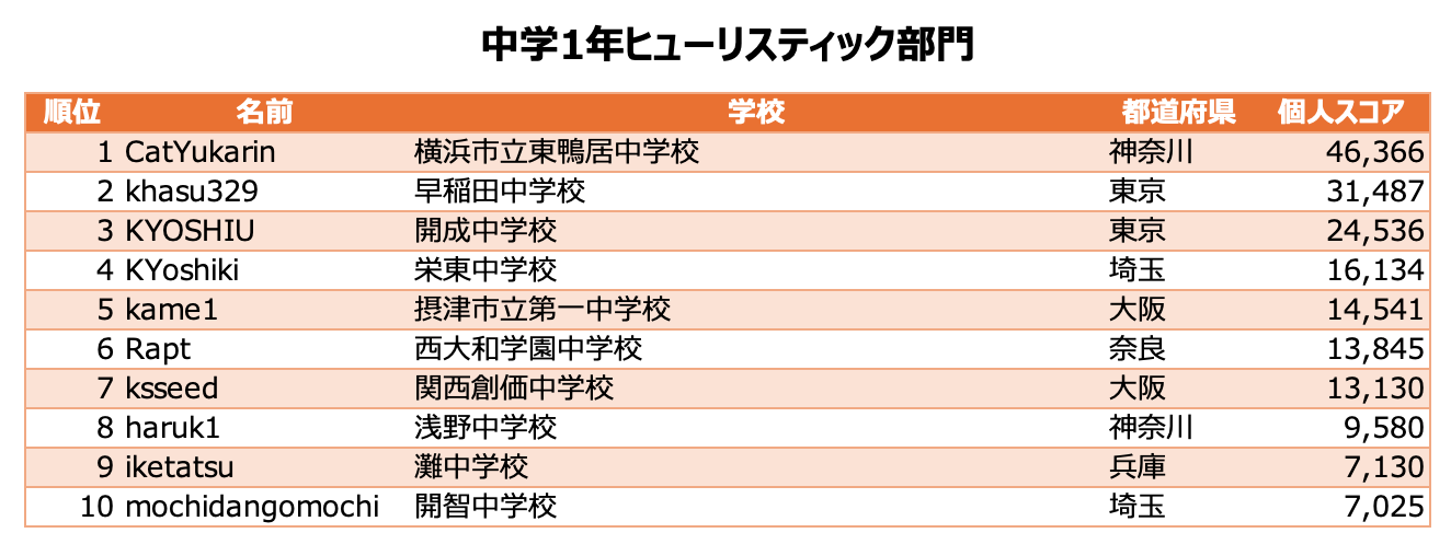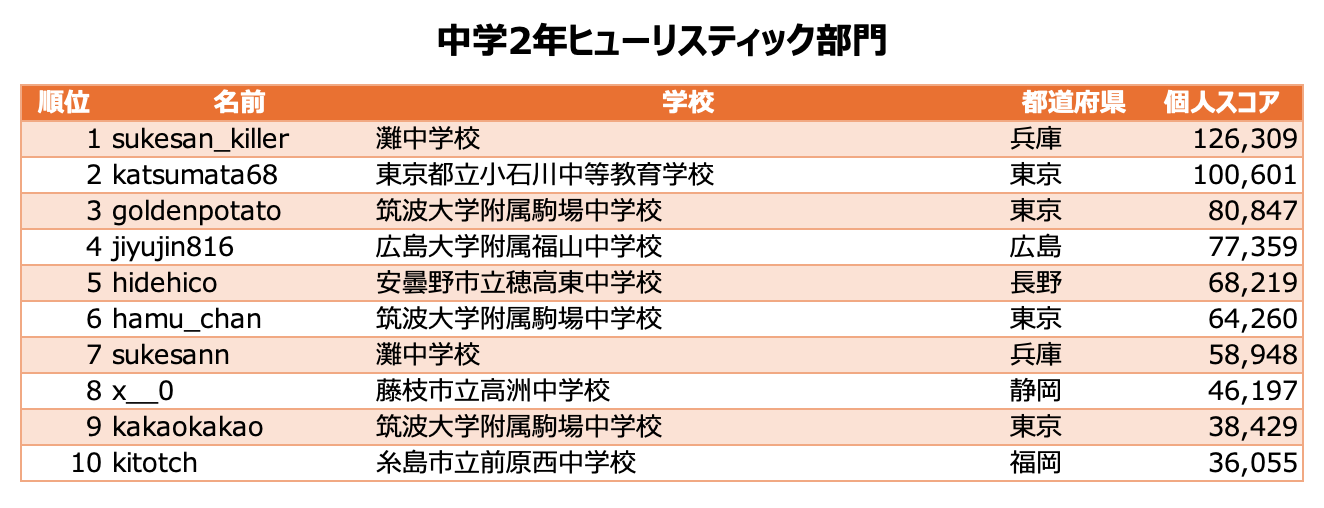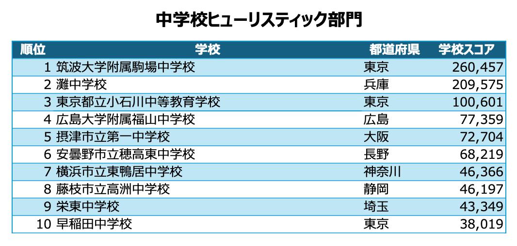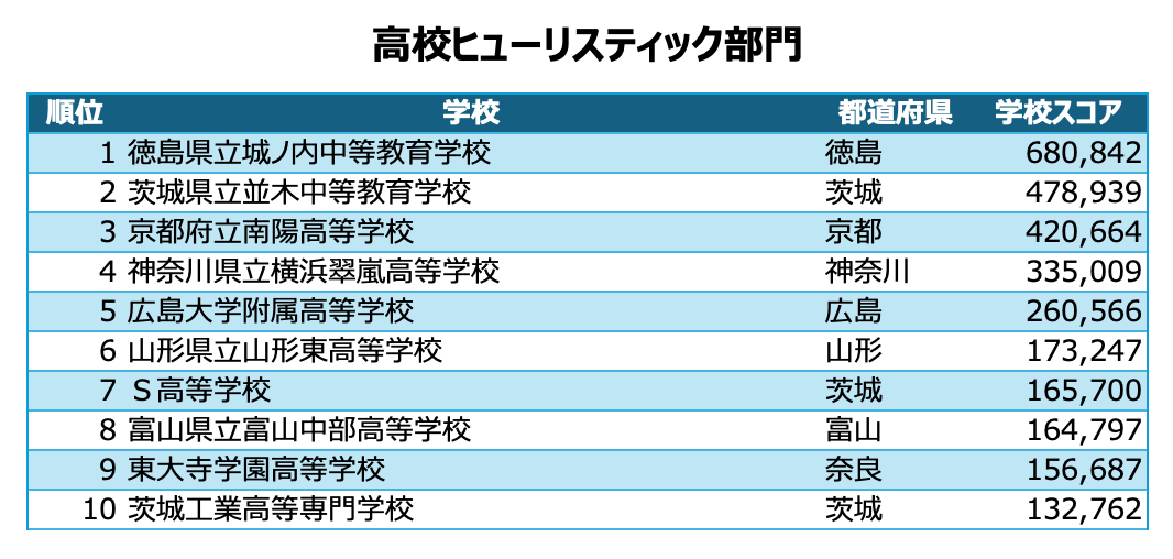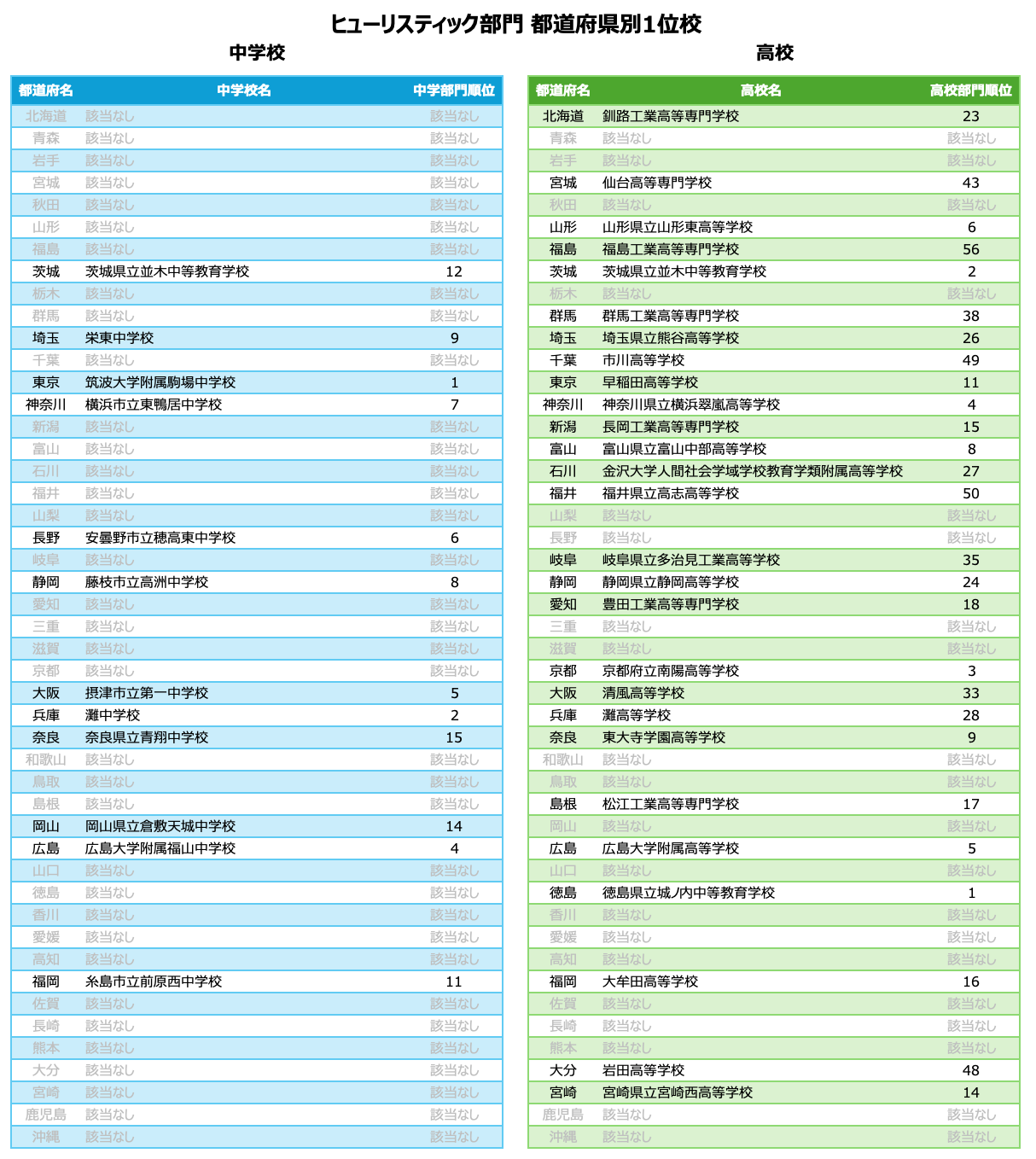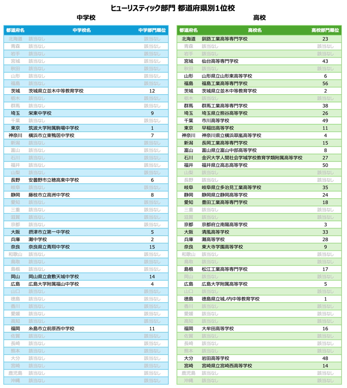 <ヒューリスティック部門 都道府県別1位の中学校・高校>
