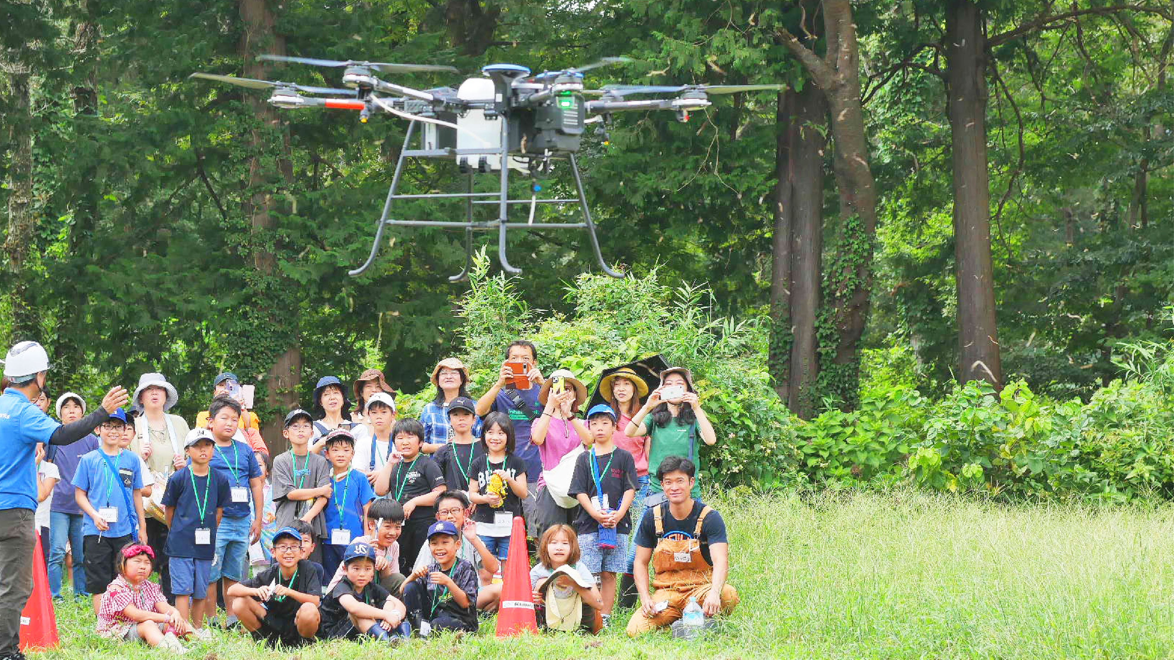 千葉市の小学生、国産自動飛行ドローンで農体験
