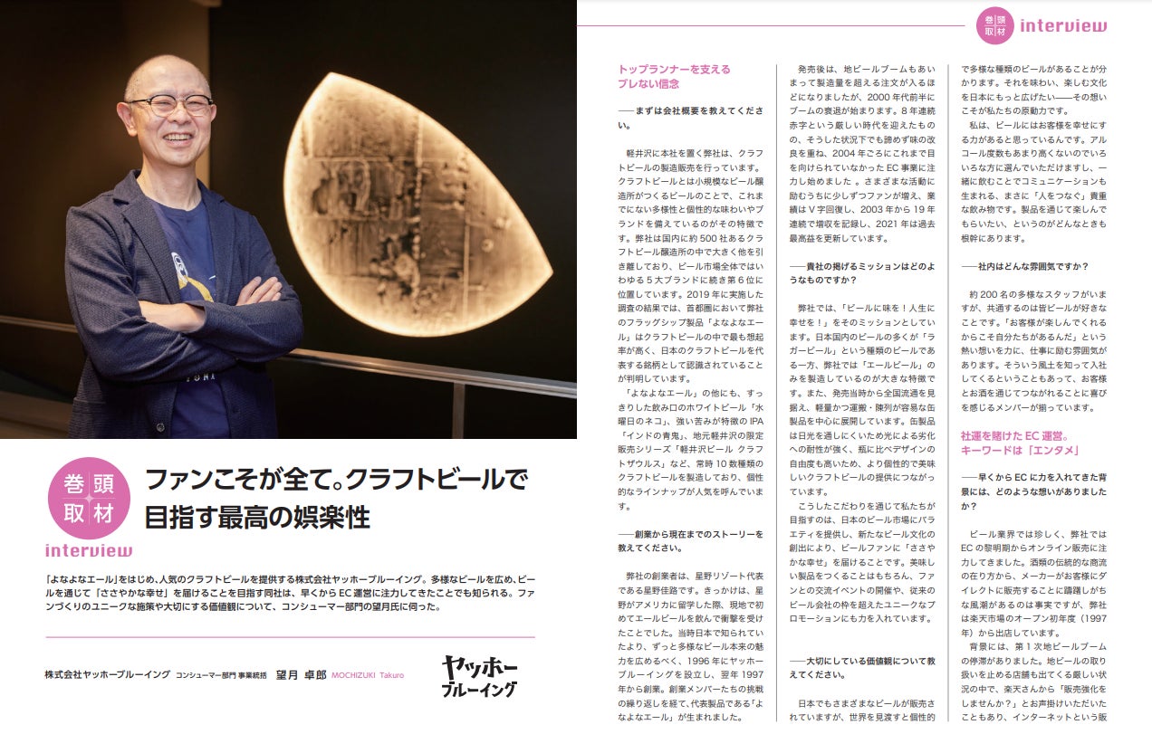 - 巻頭インタビューは『よなよなエール』で有名なヤッホーブルーイング