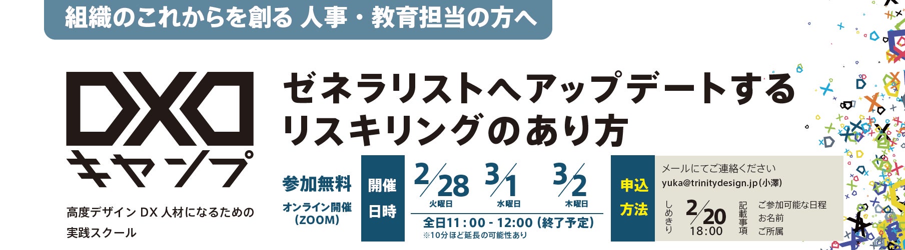 (参加費無料)2/28、3/1、3/2開催「DXDキャンプ」人事・教育担当者向けイベントのお知らせ