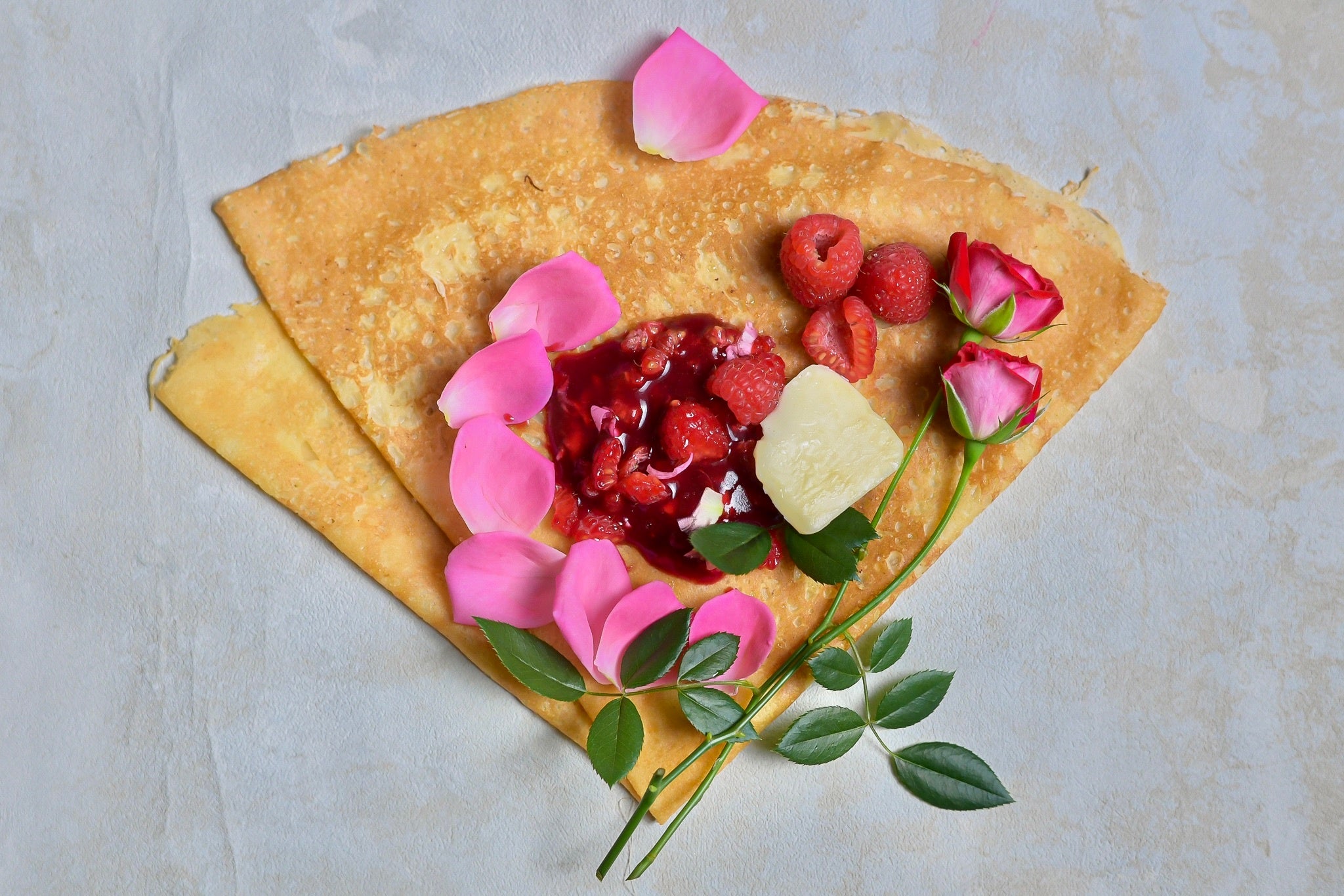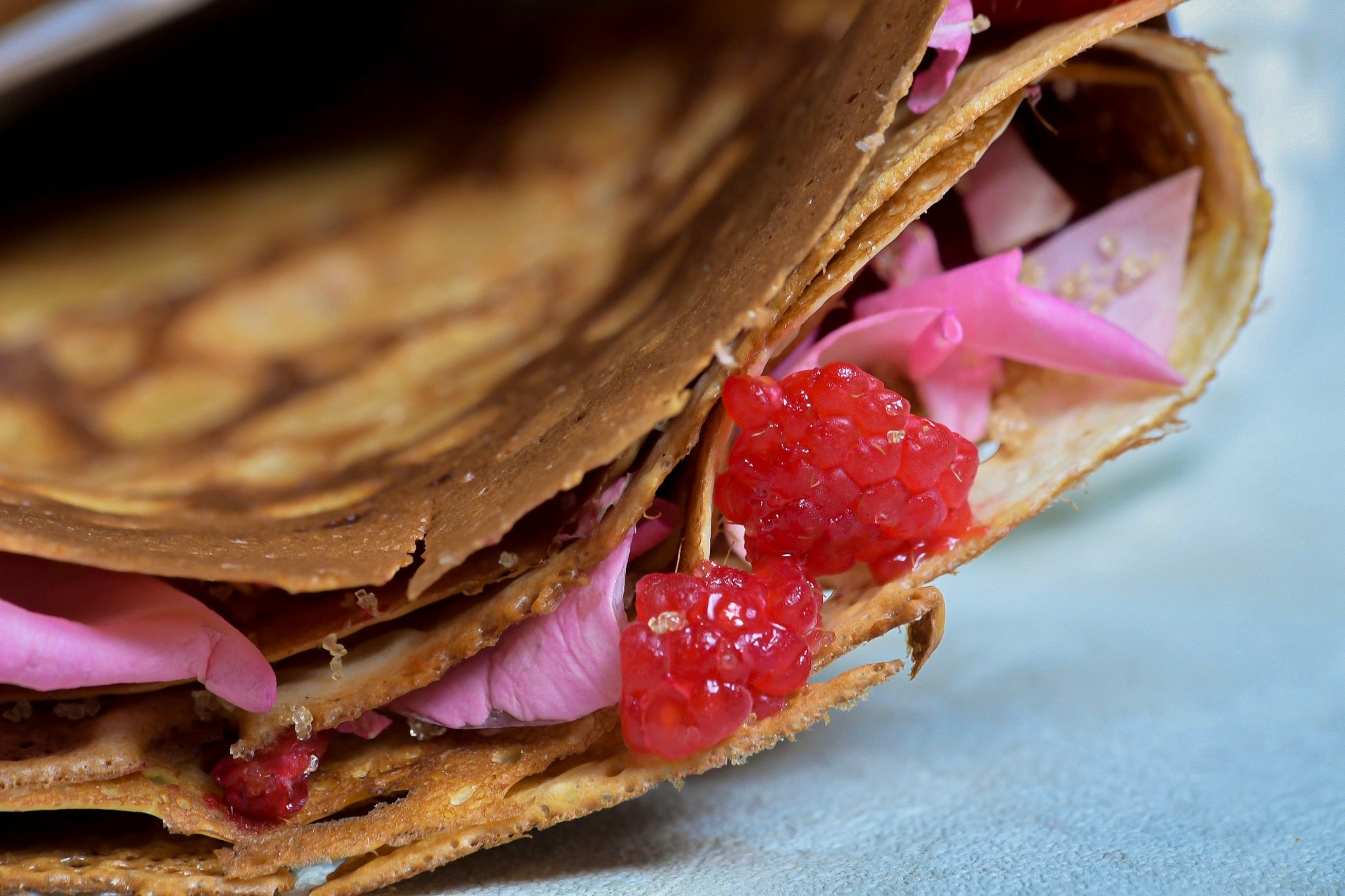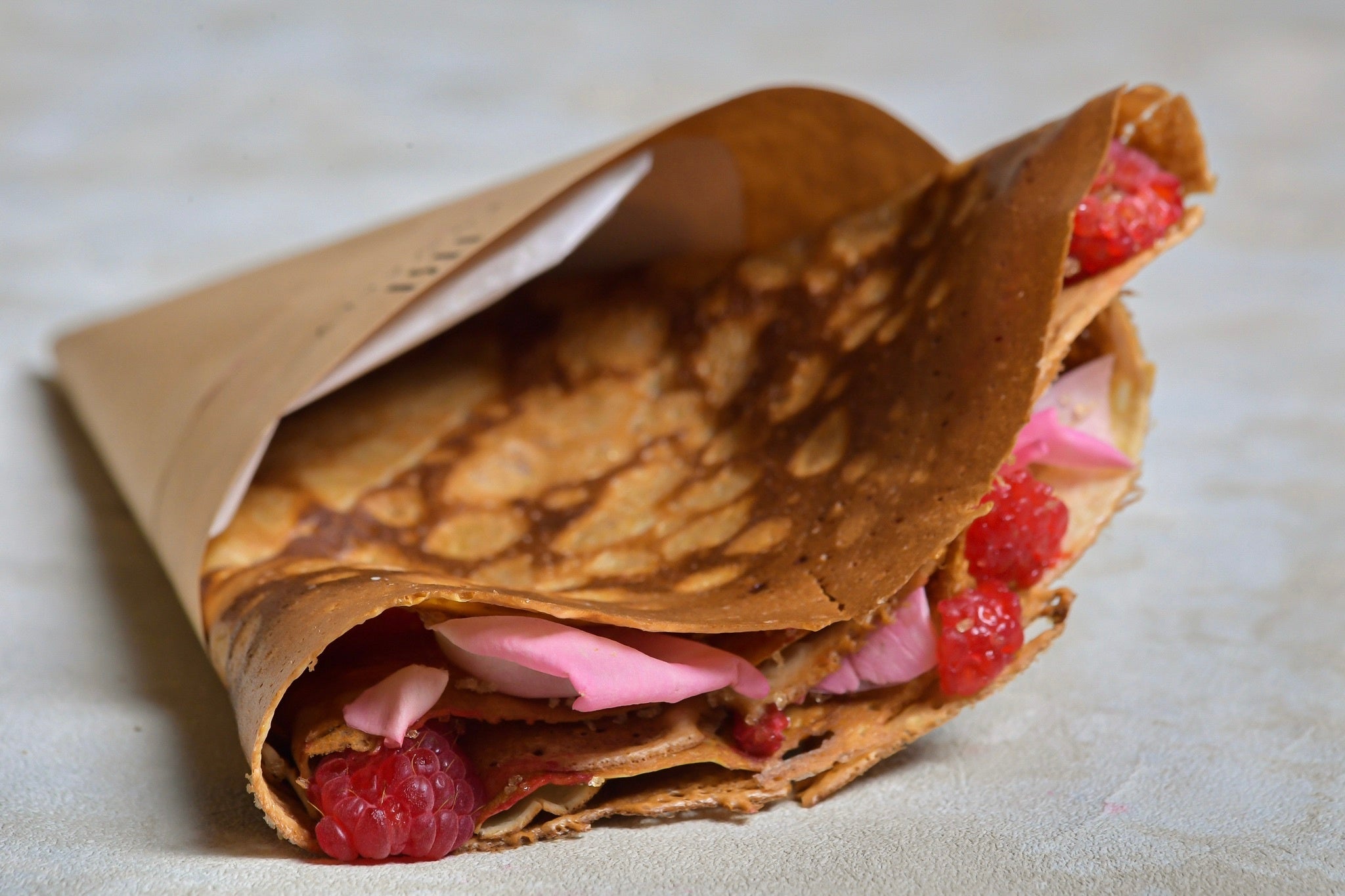 ザクザク・モチモチ・フレッシュなバラの香りの共演。薔薇・木苺・フランス産発酵バターの『薔薇香るフランボワーズのホットクレープ』伊勢丹新宿店フードコレクションにて9/14(水)より1週間の限定販売