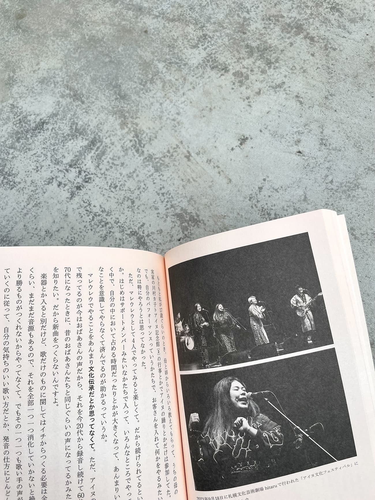 音楽分野だけでなく国内外のアートフェスティバルにパフォーマンス参加すること が多くなった とのこと。」となっていますが、元々アートフェスへのパフォーマン ス参加は行っていて、多くなった、ということではないので、「音楽分野だけでな く国内外のアートフェスティバルにパフォーマンス参加もしている。一般に興味や 認知が広まる一方で、いまも差別などの問題は解消したわけではなく、昨今のアイ ヌを取り巻く環境は大変複雑になっている。 「『アイヌの代表』といわれることを避けている?」と林さんからの問いかけに「そこは気をつけている」といいつつ、逆に「あなたがアイヌだから選んだのではな い」と過剰に気遣われるのも困るとその立場の難しさを語った。
