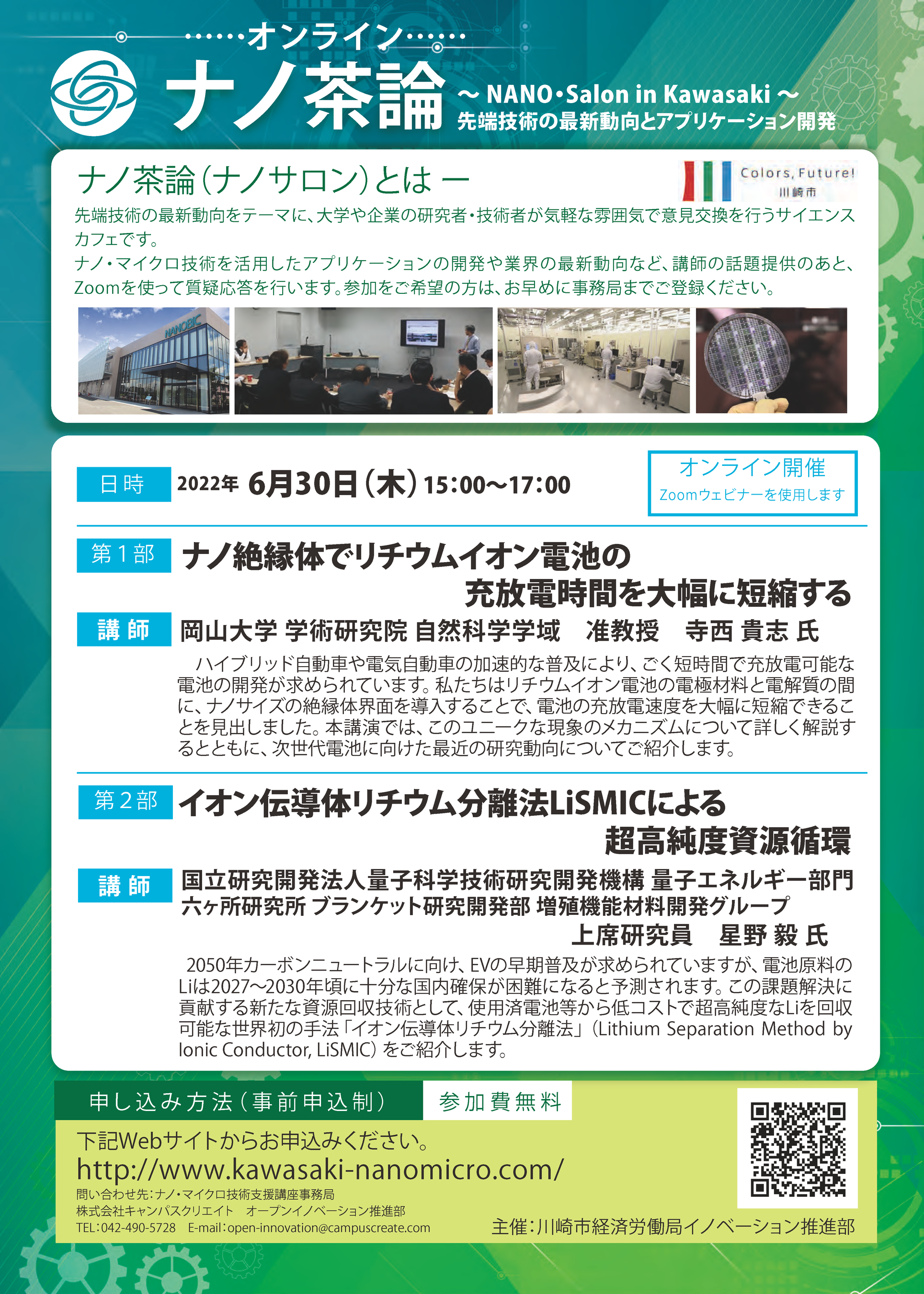 川崎市ナノ・マイクロ技術支援講座事務局(株式会社キャンパスクリエイト) 042-490-5728