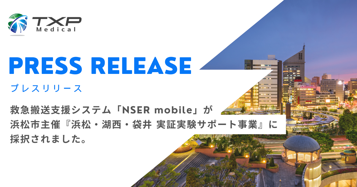 TXP Medicalの救急搬送支援システム「NSER mobile」が浜松市主催『浜松・湖西・袋井 実証実験サポート事業』に採択されました。