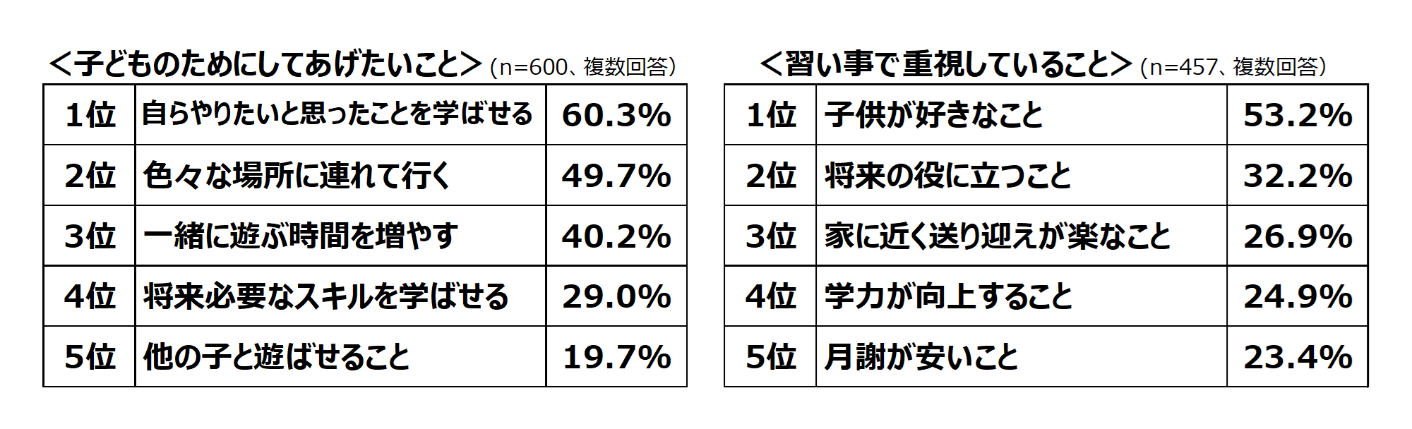 子どものためにしてあげたいこと、習い事で重視していることTOP5