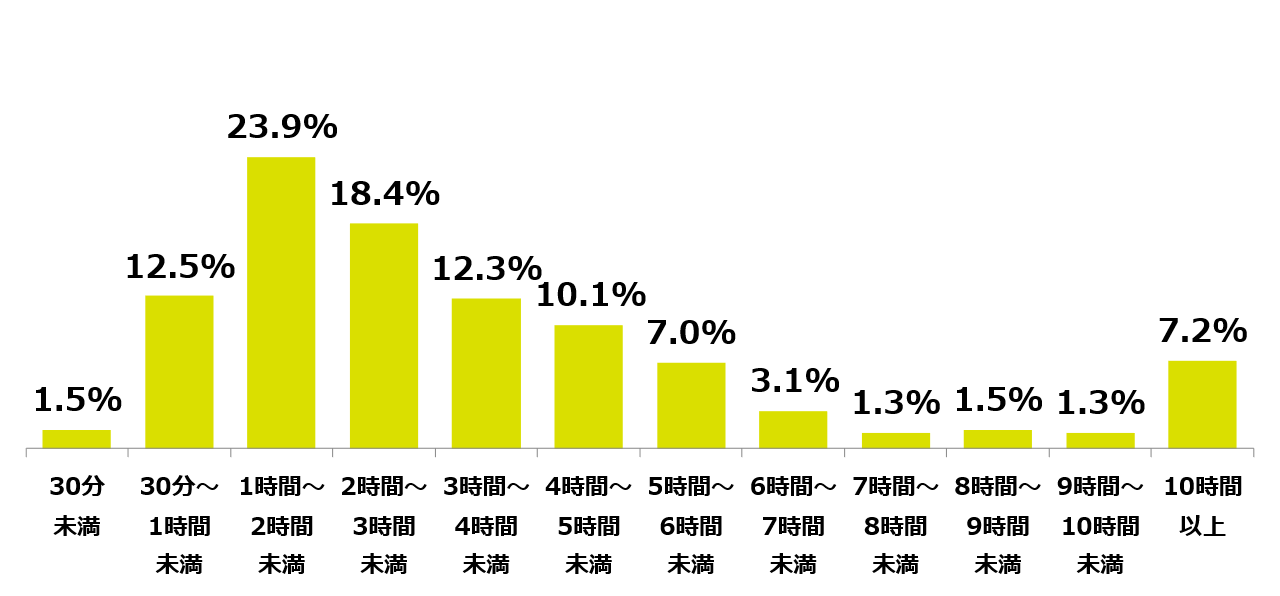 Q.あなたのお子さまの1週間の習い事の合計時間を教えてください(n=457、単数回答)