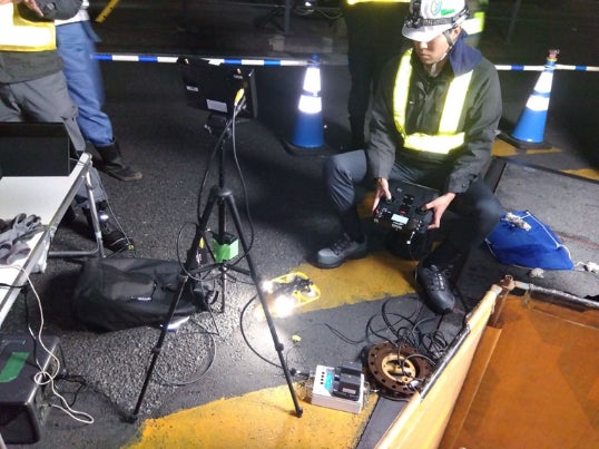 道路の下に埋設された水道管の工事を行う場合、どうしても地上の道路の規制が必要になります。そのため、交通の影響の少ない夜間に作業を行うだけでなく、作業時間をなるべく短くする必要があります。今回のような品質確認の作業では、従来の人が管の中に入って必要な個所の撮影と記録を行う場合、およそ3日かかるといいます。一方、IBIS2を使った撮影では、工事の対象区間を2日で記録し終え、大きく工期を短縮することができました。