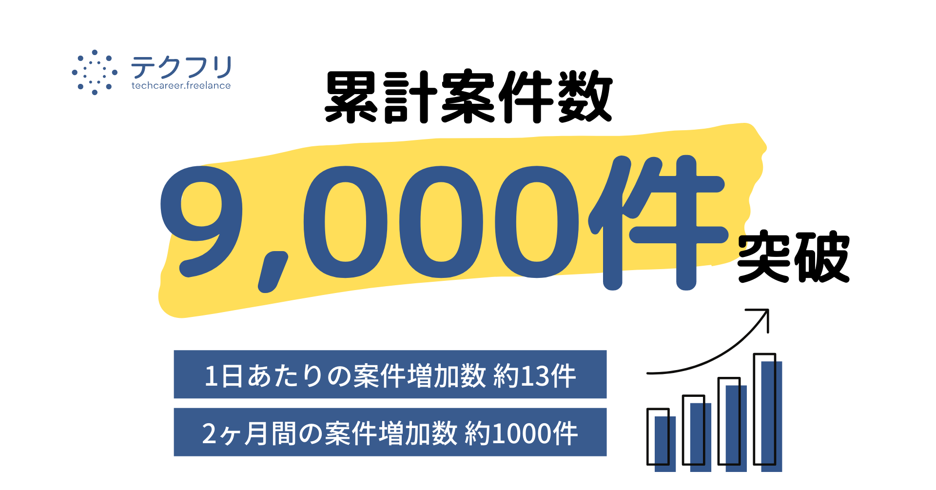 フリーランスエンジニアの案件サイト「テクフリ」が業界高水準の案件増加率で過去最大の案件数9,000件を突破!