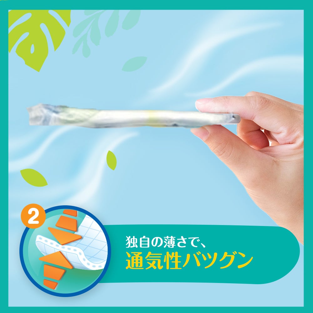 おむつが薄いので、通気性バツグン。蒸し暑い夏でも、赤ちゃんのお肌をおむつかぶれから守ります。