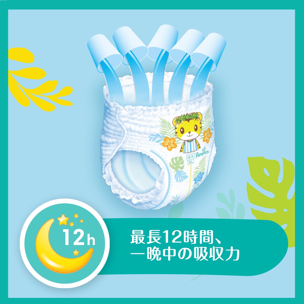 さらに、パッケージとおむつのイラストには、夏らしいトロピカルしまじろうデザインを採用。麦わら帽子、サングラス、ねじりはちまきなど、夏定番のアイテムを身につけたしまじろうが目印のパッケージで、ヤシの木やハイビスカスのイラストが一気に夏気分を盛り上げます。