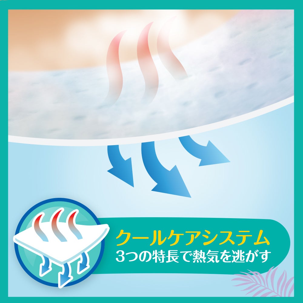 おしっこをした後のおむつ内の温度を2℃下げて*1、蒸し暑い夏でも快適に!