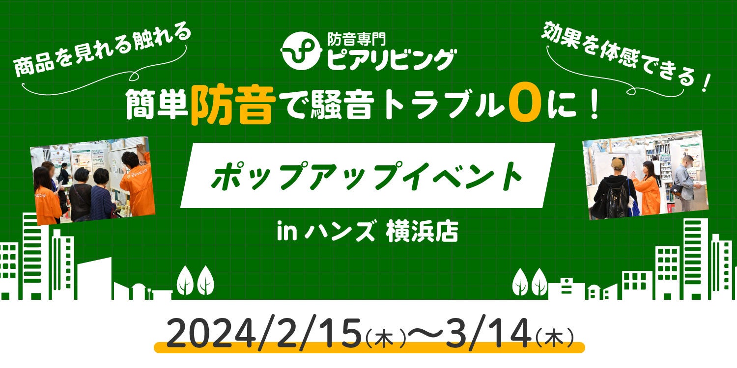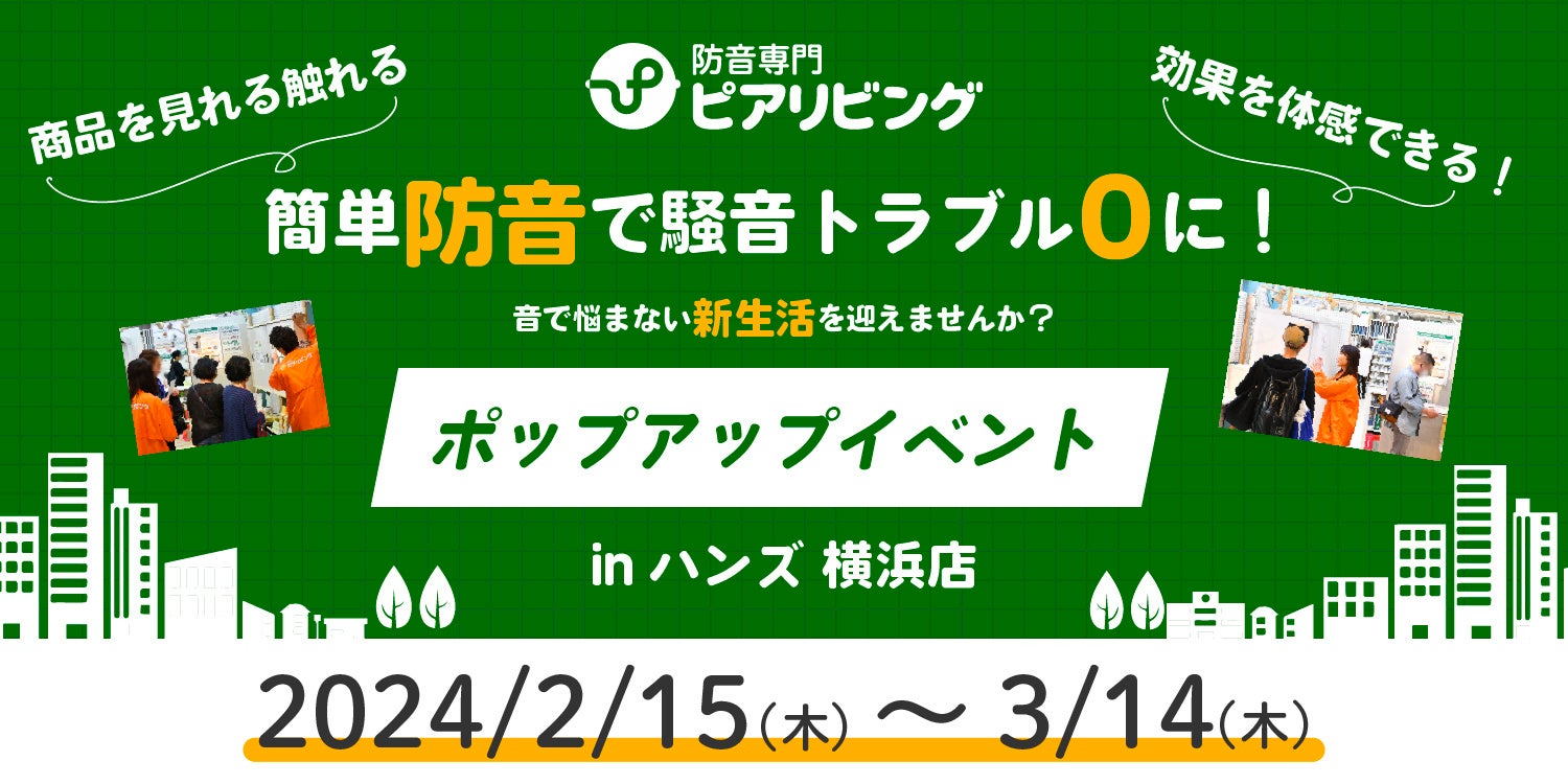【防音専門ピアリビング】ハンズ横浜店にて、2/15(木)から防音商品が体感できるポップアップイベントを開催!来場特典として現場調査キャンペーンも実施