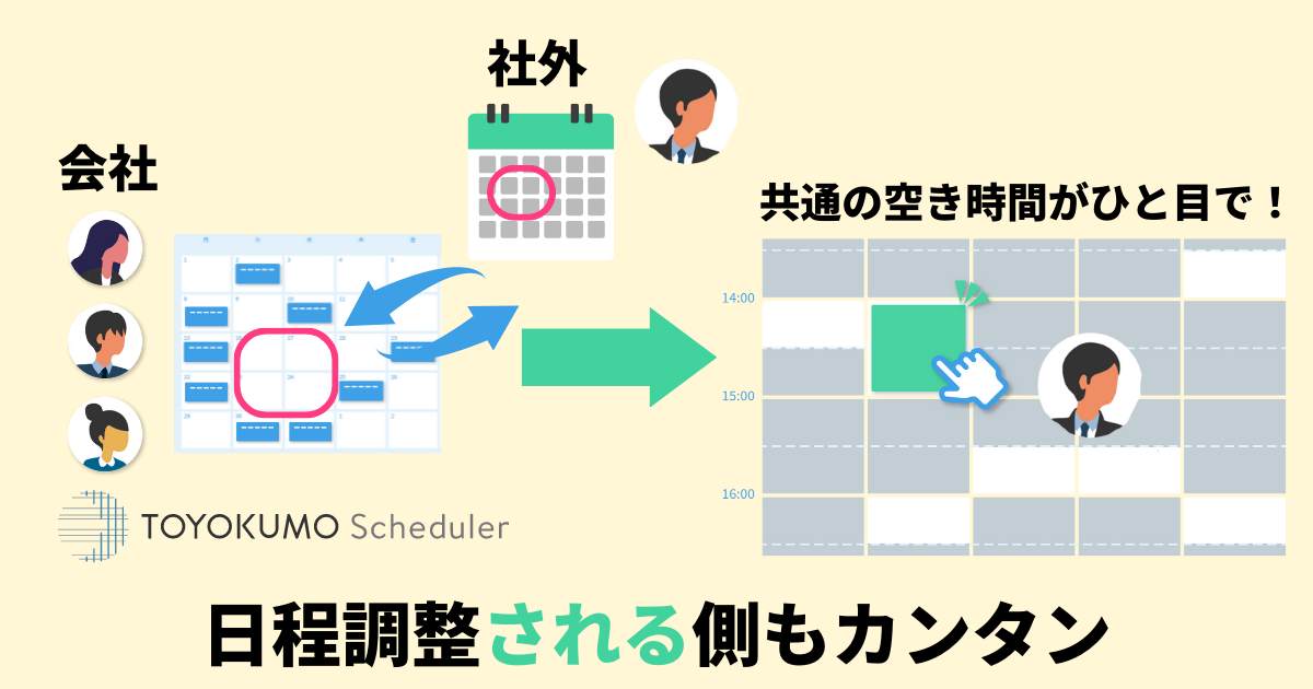 日程調整をもっと親切に。トヨクモ スケジューラーは日程調整"される"側も便利になります。