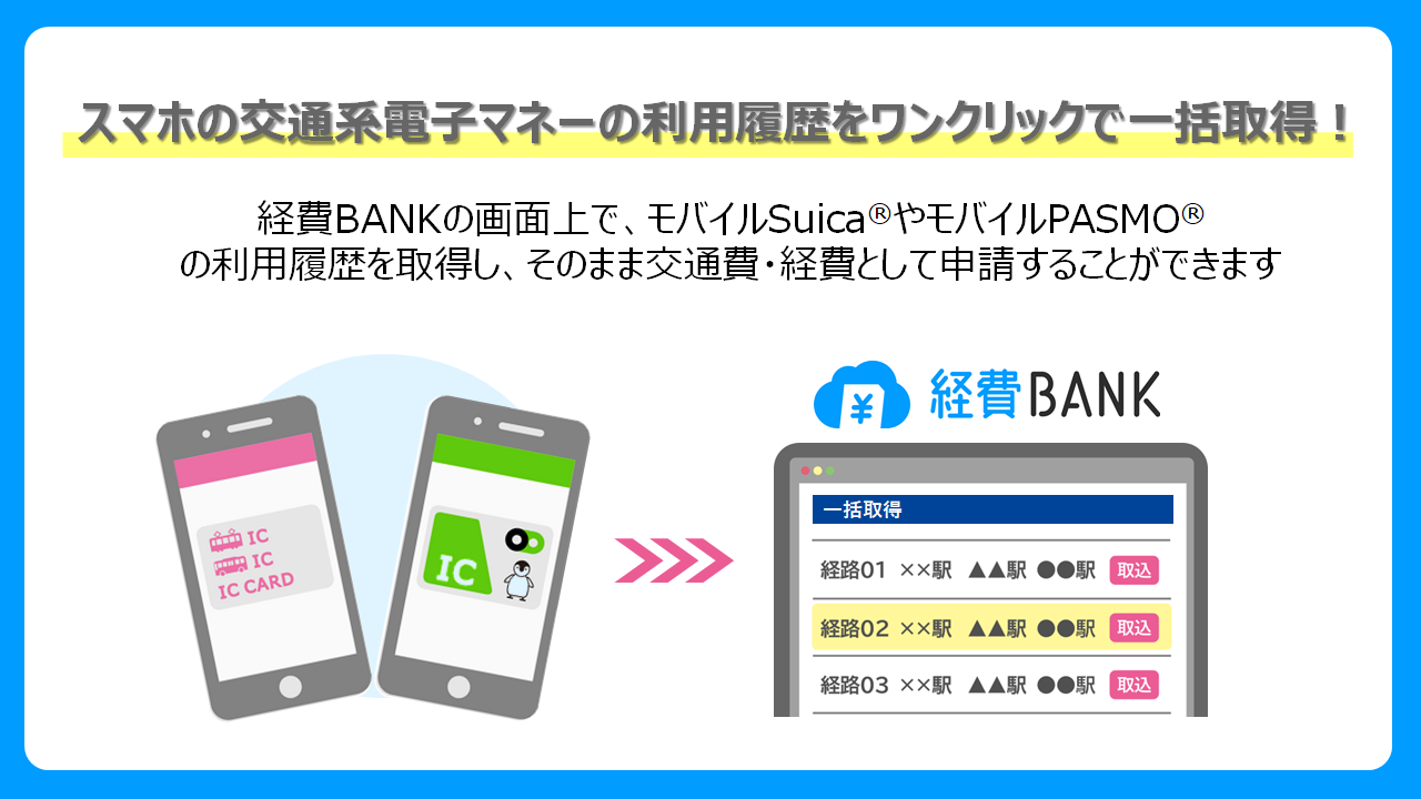 スマホの交通系電子マネーの利用履歴をワンクリックで一括取得!クラウド型経費精算システム「経費BANK」が「スマートLINK機能」を提供開始