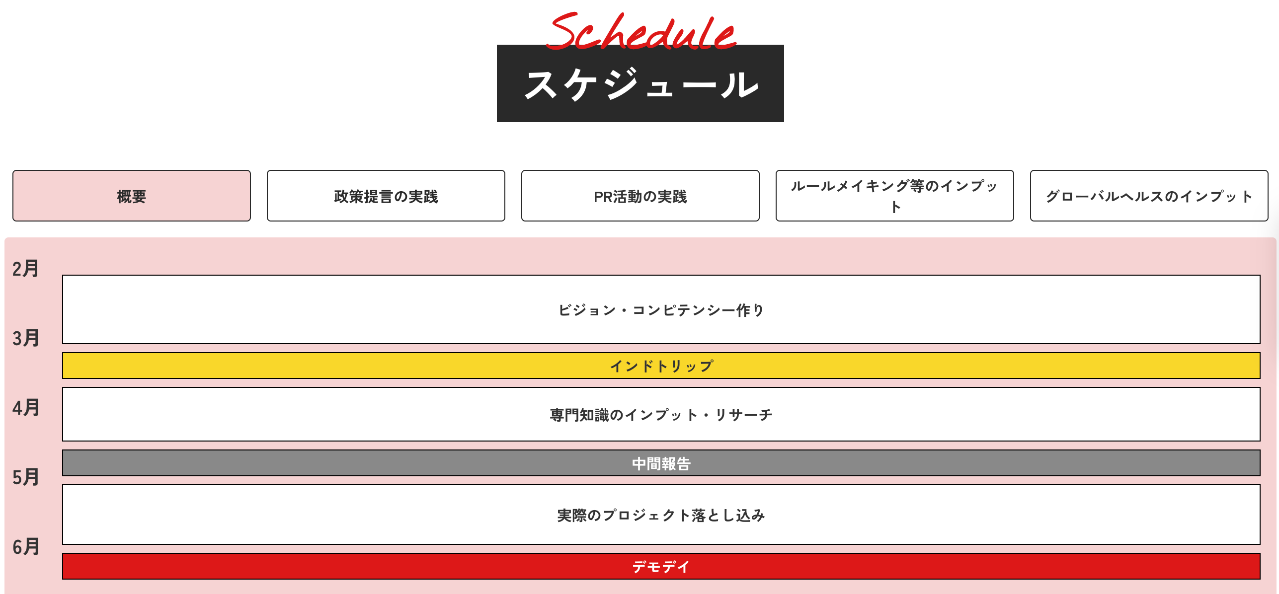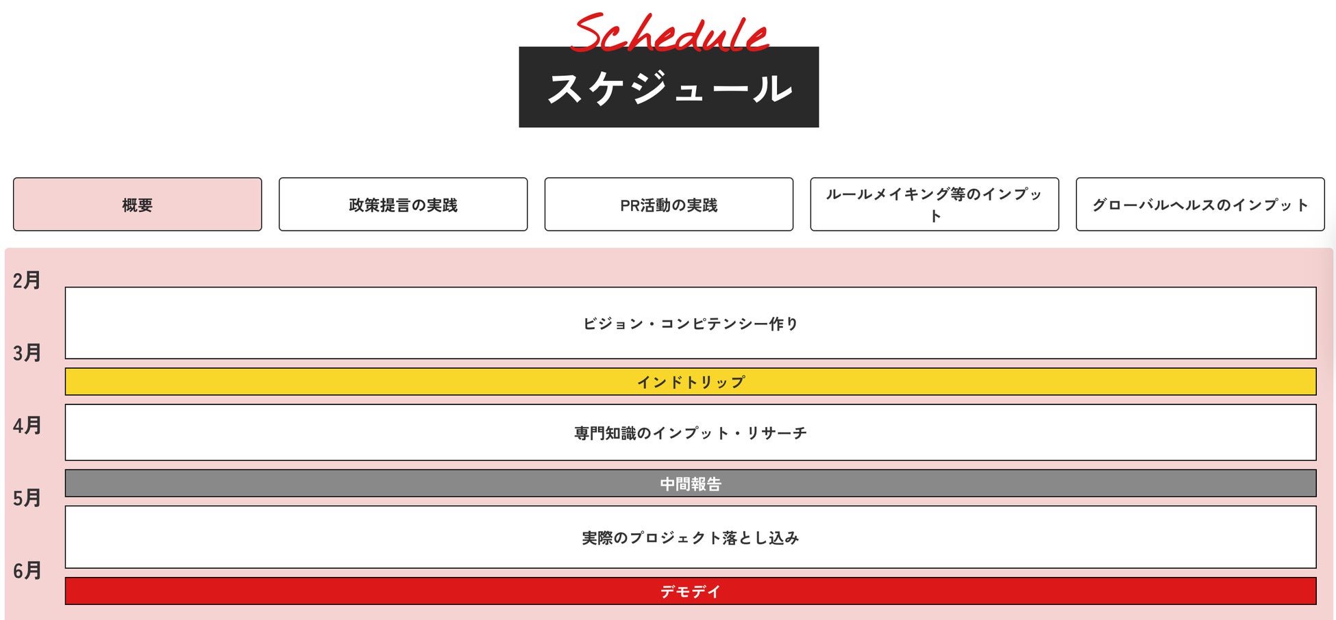 - プログラムのタイムスケジュールとコンテンツ