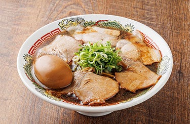 ガツンと醤油の旨味を感じながらも、キレのある味わい。和ノ助の看板商品博多中華そばに味玉をのせた一杯。