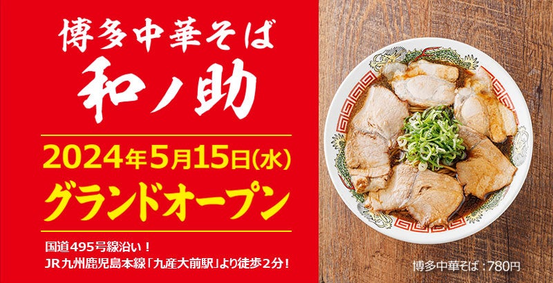 吉村幸助プロデュース【博多中華そば 幸ノ助】ベースのプロデュース1号店「博多中華そば 和ノ助(わのすけ)」が2024年5月15日グランドオープン!
