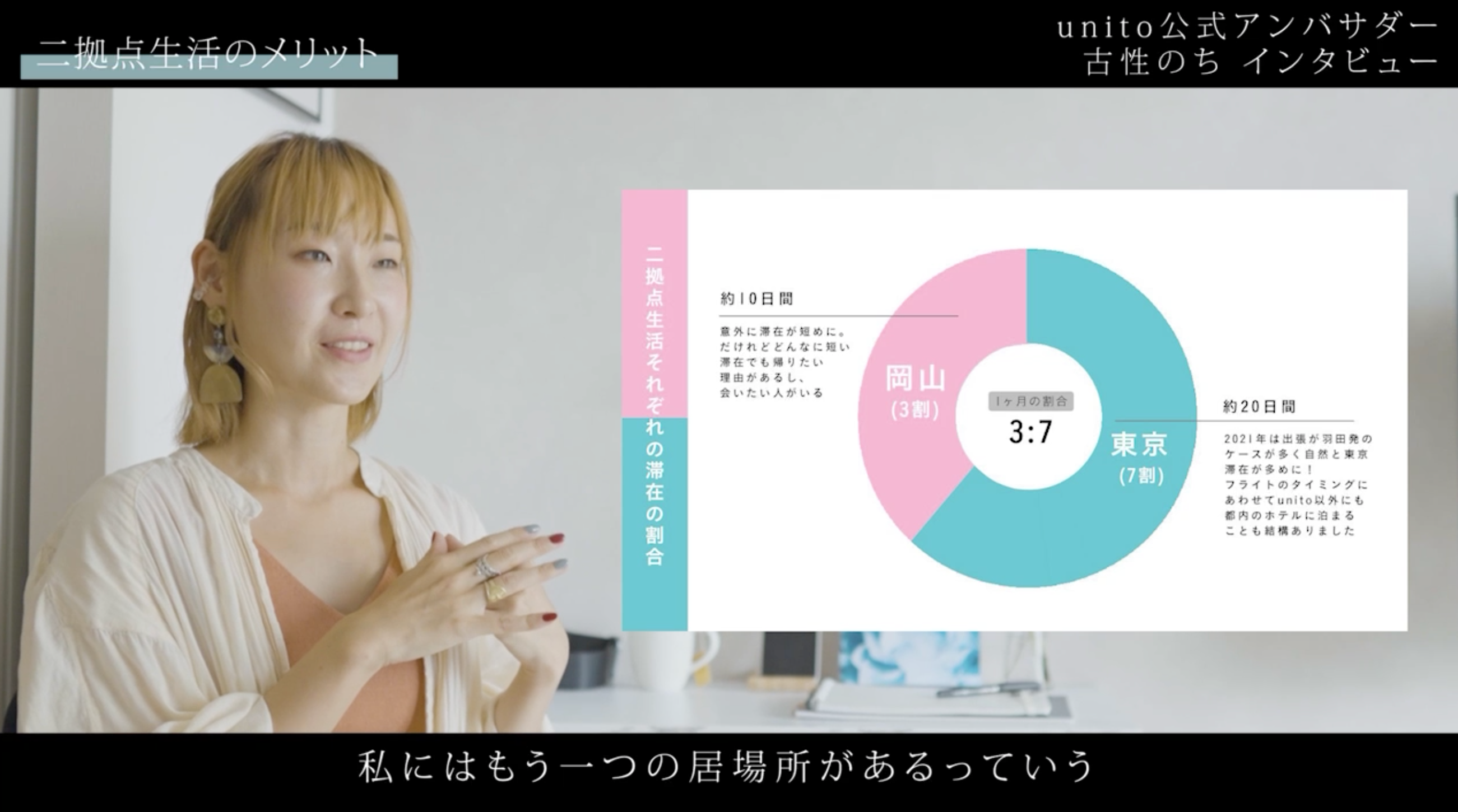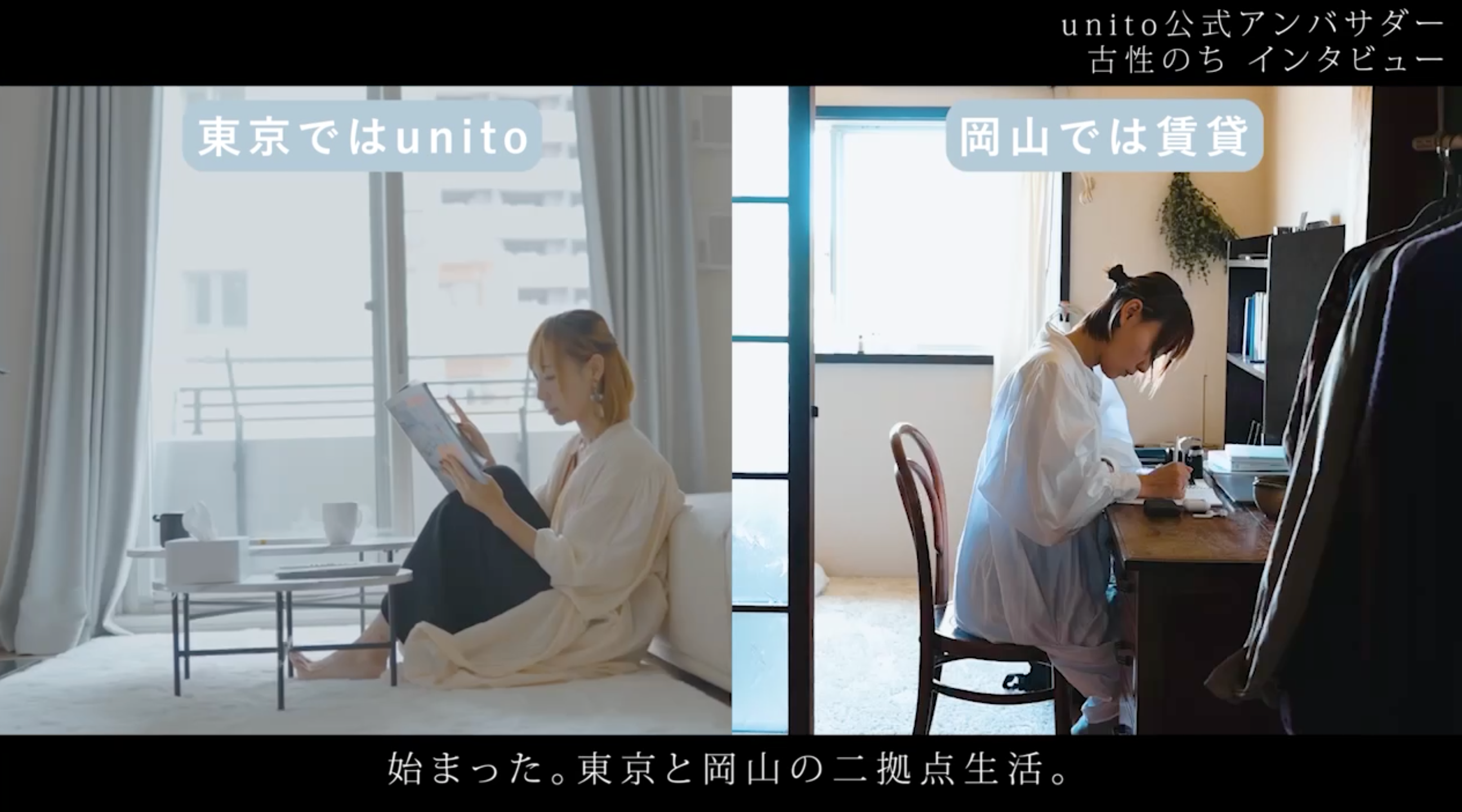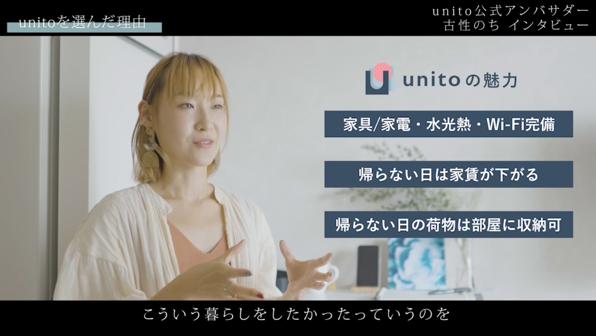 帰らない日は家賃がかからない住まい「unito」、二拠点生活アンバサダー・古性のちさんのインタビュームービーを公開
