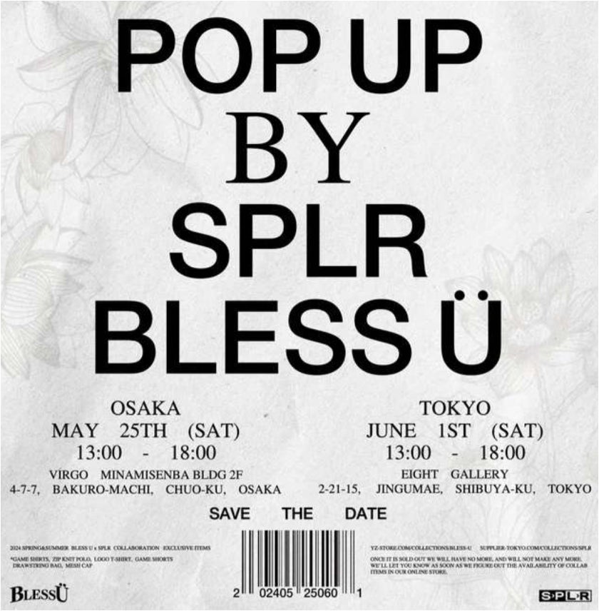 さらにコラボレーションを記念して、2024年5月25日(土)に大阪、6月1日(土)に東京の2都市でコラボPOPUPを開催。2024年6月3日(月)19時から「SUPPLIER」と、「BLESS Ü」の公式オンラインストアでの販売を予定しております。