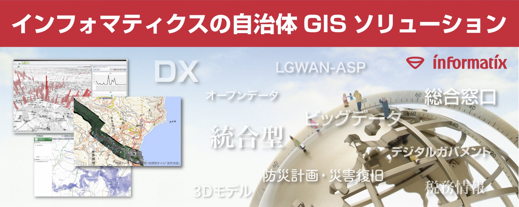 インフォマティクスは本展示会で「自治体業務を進化させるGISソリューションを提供」をテーマに、自治体向けソリューションをオンラインにてご紹介しています。