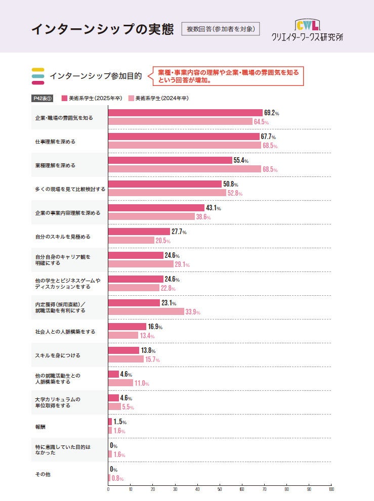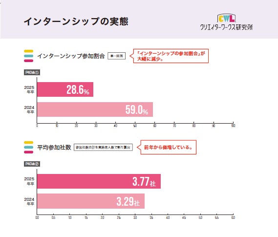 調査速報 第3弾!クリエイターワークス研究所【25年卒美術系学生就活実態調査】25卒学生のインターンシップ参加割合、前年を大幅に下回る結果に