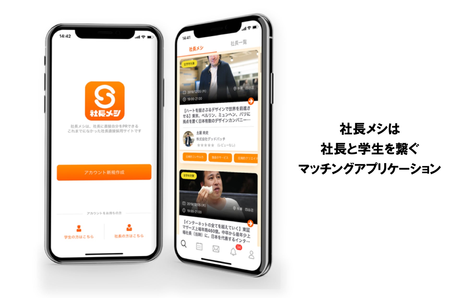 | ■社長メシ事業について 就職/採用活動に特化したCtoCマッチングサービスで、社長がアプリやウェブサイトでセッティングした食事会に就活生が応募をすることで、お互い気軽な雰囲気で面談ができるサービスです。デスクをはさんだ重苦しい面接ではなく、テーブルを囲んで社長と就活生が語り合うことにより、双方が本質的に語り合い、深い理解を得ることに繋がることから、『直接社長と思いを語り合いたい』という熱量の高い学生に多く利用されています。サービスリリース約5年で累計登録社長数は1000名、累計学生ユーザー数は5万人、累計イベント数は10,000マッチングを実現するカジュアルリクルーティングの代表的なサービスに成長しています。 ■今後予定している追加機能や施策 今後の取り組みとして、 企業が学生に対してアプローチができるオファー機能の実装を進めていく予定です。既存のイベント開催機能と連携した説明会へのオファーや人事アカウントとの面談オファー、社長アカウントとの直接面談できる社長オファーなど、学生と企業双方の表現を活性化し、より良いマッチングを増やしていくことができるサービスを目指します。