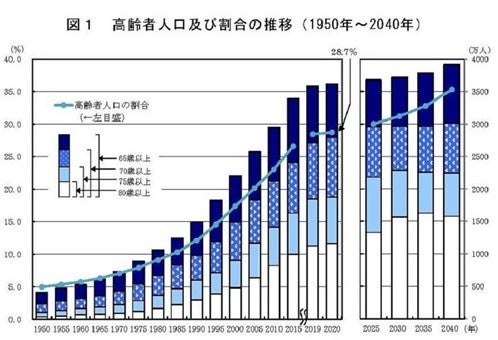 総務省統計局 高齢者の人口調査からも2040年までは高齢者増加の一途となり、3人に1人が高齢者になる時代が迫っております。市場背景からも老人ホーム入居率やニーズは今後も上昇することを予想しております。