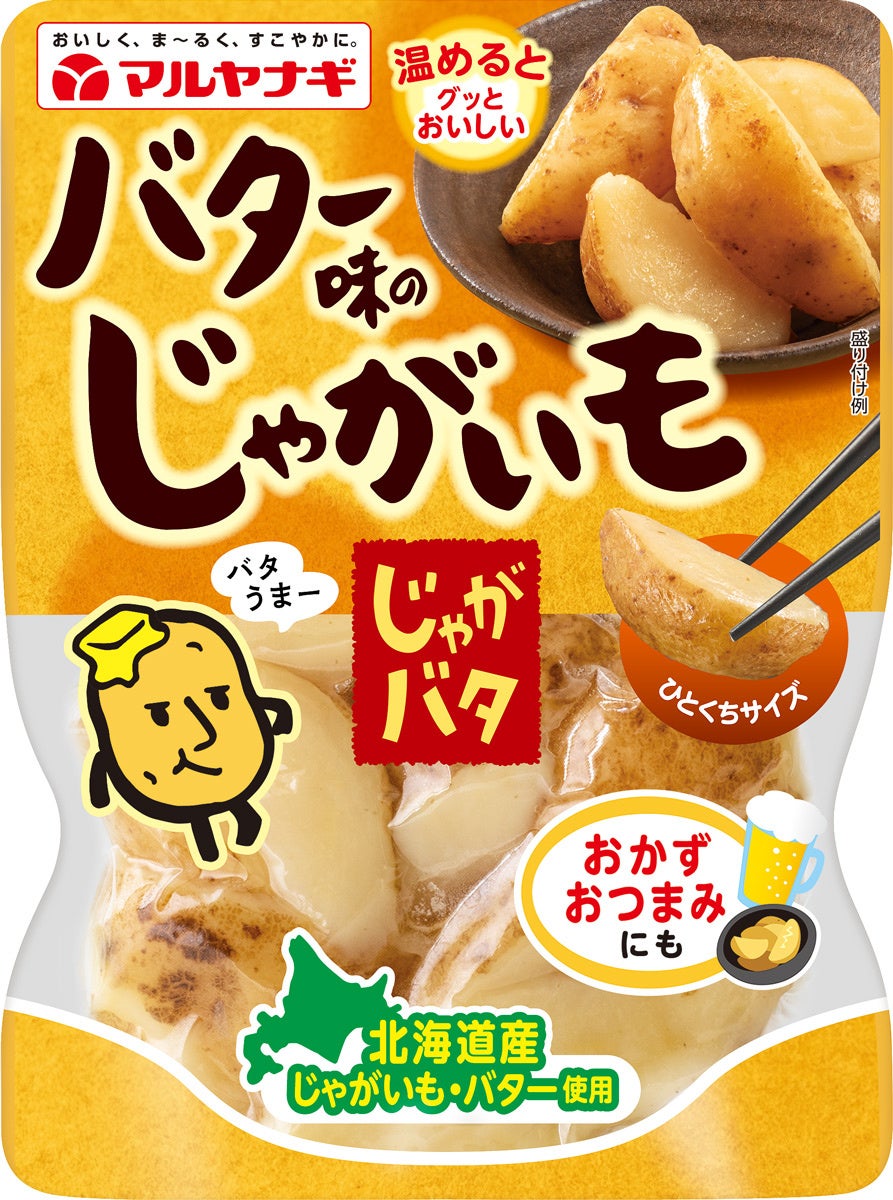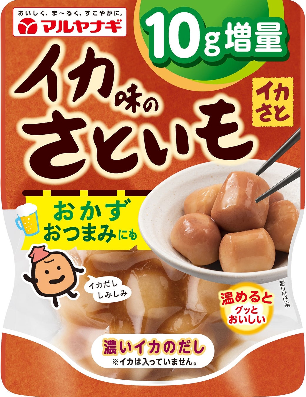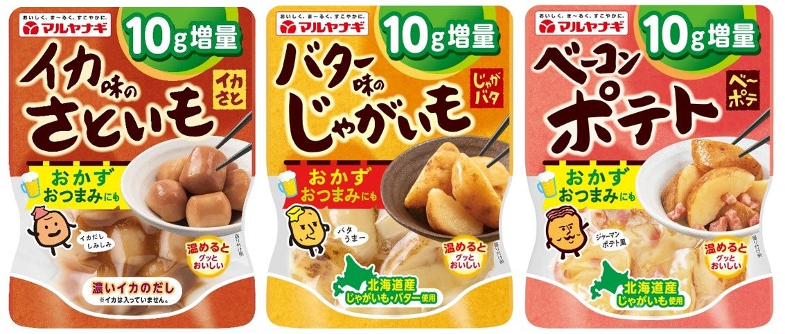マルヤナギの袋入り惣菜『ひとくちサイズのおかず』シリーズは、素材を活かした味わい、おかずやお弁当にも使いやすいサイズ感、常温でストックでき、開封してそのまま食べられる簡便性が特徴の、袋入り惣菜シリーズです。お弁当やお子さまのおやつにおすすめの“甘煮”タイプは、素材の甘みを活かした「ひとくちサイズのさつまいも」「しっとり甘栗」「おさつ塩バター」の3種をラインナップ、また、おかずやおつまみにおすすめの“おかず”タイプは、素材のうま味を活かした「イカ味のさといも“イカさと”」、「バター味のじゃがいも“じゃがバタ”」、「ベーコンポテト“ベーポテ”」の3種をラインナップし、お客様にご好評をいただいております。お客様が好みや用途に合わせてストックできる6種の多彩なラインナップとなっています。