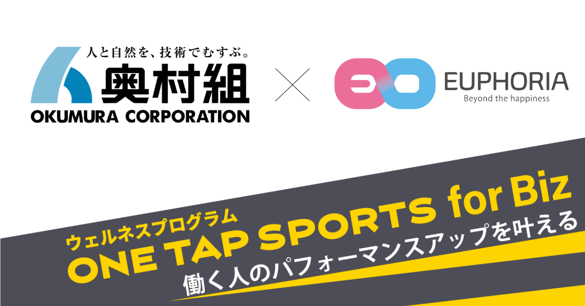 このような課題に対し労働災害予防の観点から、奥村組では建設現場で従事する社員および協力会社の建設作業員の皆さまの安全・健康を守るプロジェクトを開始しました。そこで、アスリートのコンディショニングに長年向き合ってきたユーフォリアがタッグを組み、コンディショニングノウハウを生かした健康経営プログラム「ONE TAP SPORTS for Biz」を、奥村組の建設作業現場に導入いただくこととなりました。まずは、建設作業員の熱中症リスクを低減するためのコンディショニングに取り組んでまいります。