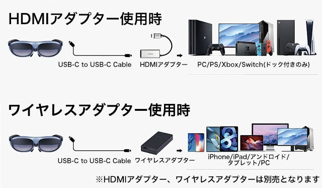 Rokid HUBやHDMIアダプター(別売)を使用することでNintendo SwitchやPS 5などのゲーム機と接続することも可能です。巨大スクリーンと高音質なサウンドで迫力のあるゲーム空間をお楽しみください。