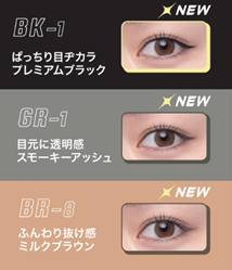 こだわりの細さ0.01mmの筆先*3と手ブレ防止ボトルで目のキワ、目尻、下まつ毛まで描きやすい!艶やかブラック、透明感のアッシュカラー、抜け感のミルクブラウンの3色が加わり、毎日使いの定番決定!