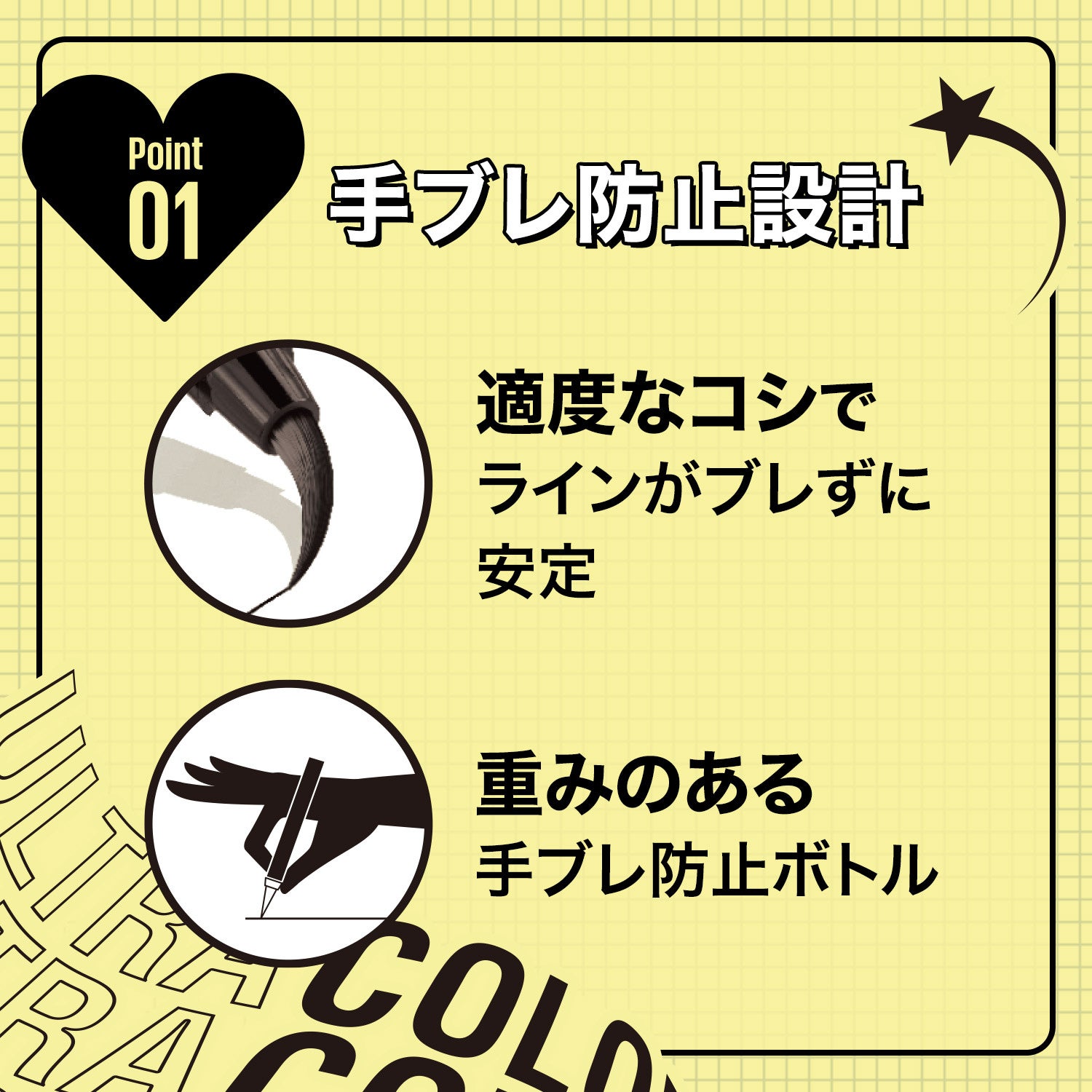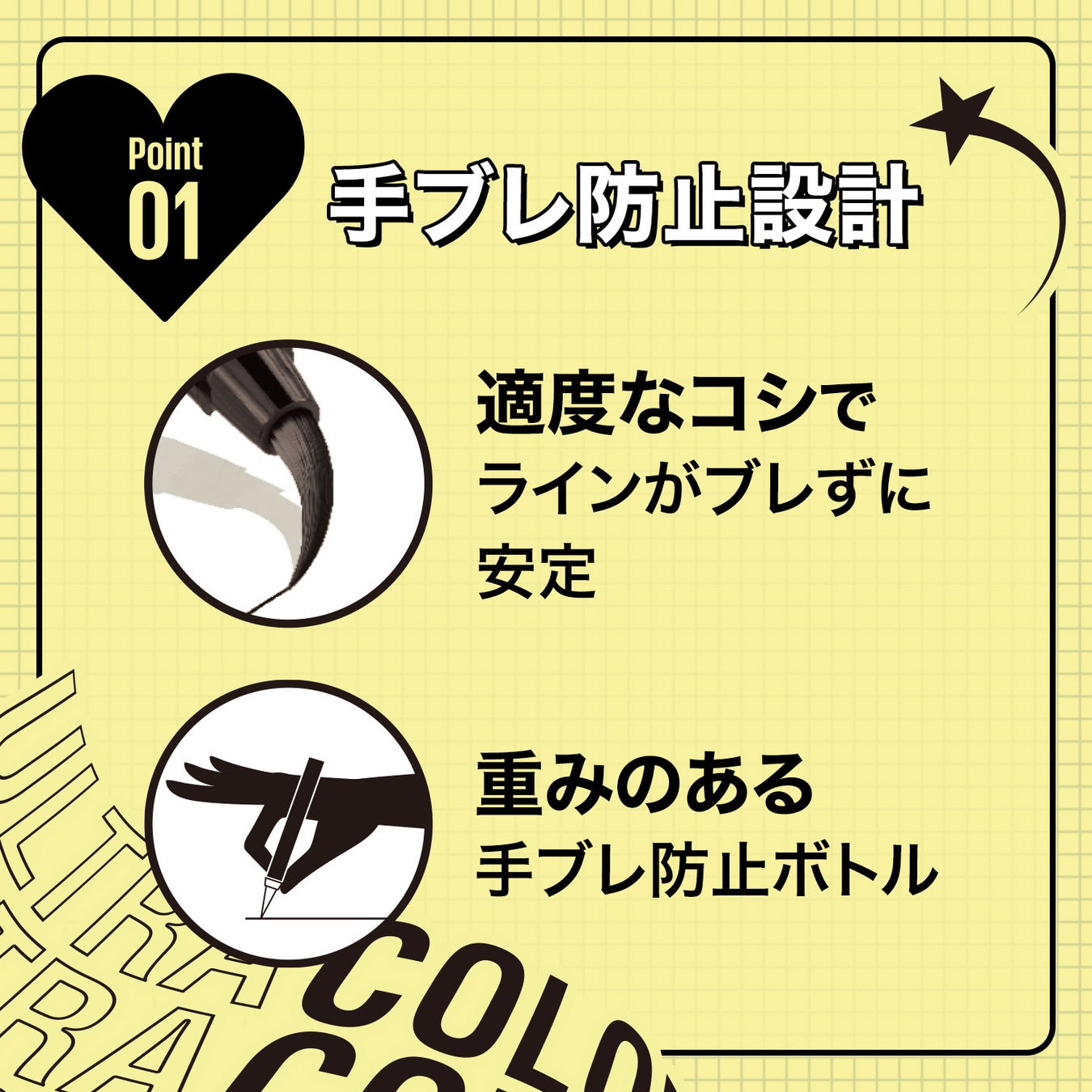 「ブレずに一発!*2 秒で盛れる、アイライナー」